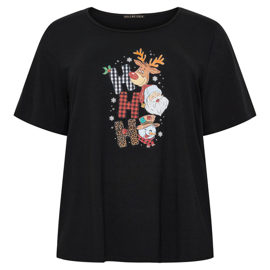 Skap ekte julestemning med denne sorte T-skjorten fra NO. 1 BY OX. Den myke kvaliteten av 95% viskose og 5% elastan gir en behagelig og fleksibel passform, mens det morsomme “Ho Ho Ho”-motivet med reinsdyr, snømenn og nisse sprer smil og varme – både til hverdags og julefrokoster.
