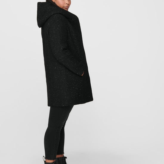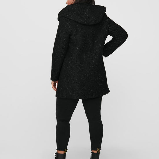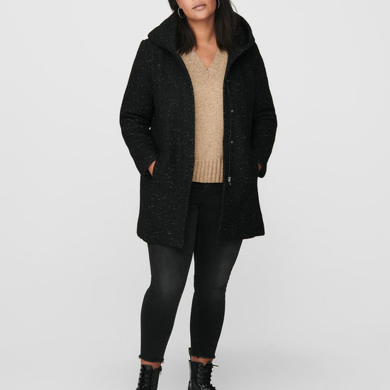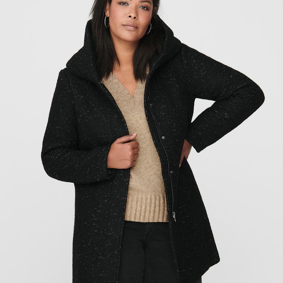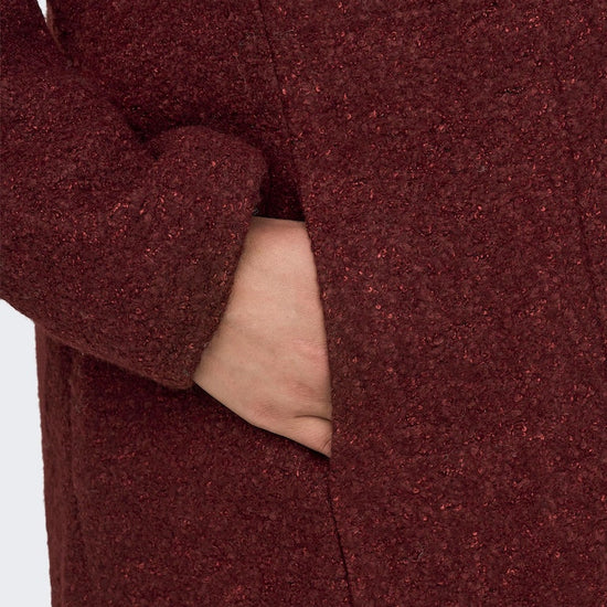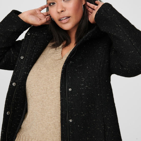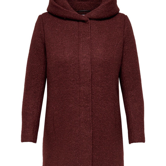 Boucle jakke med hette. Skjult glidelås. 2 skjulte lommer.