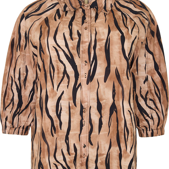 Det elegante sandfargede og sorte mønsteret gjør skjorten lett å style både til hverdags og mer formelle anledninger. Bruk den sammen med dine favorittjeans fra vårt jeansutvalg eller kombiner med et skjørt for et mer feminint preg.