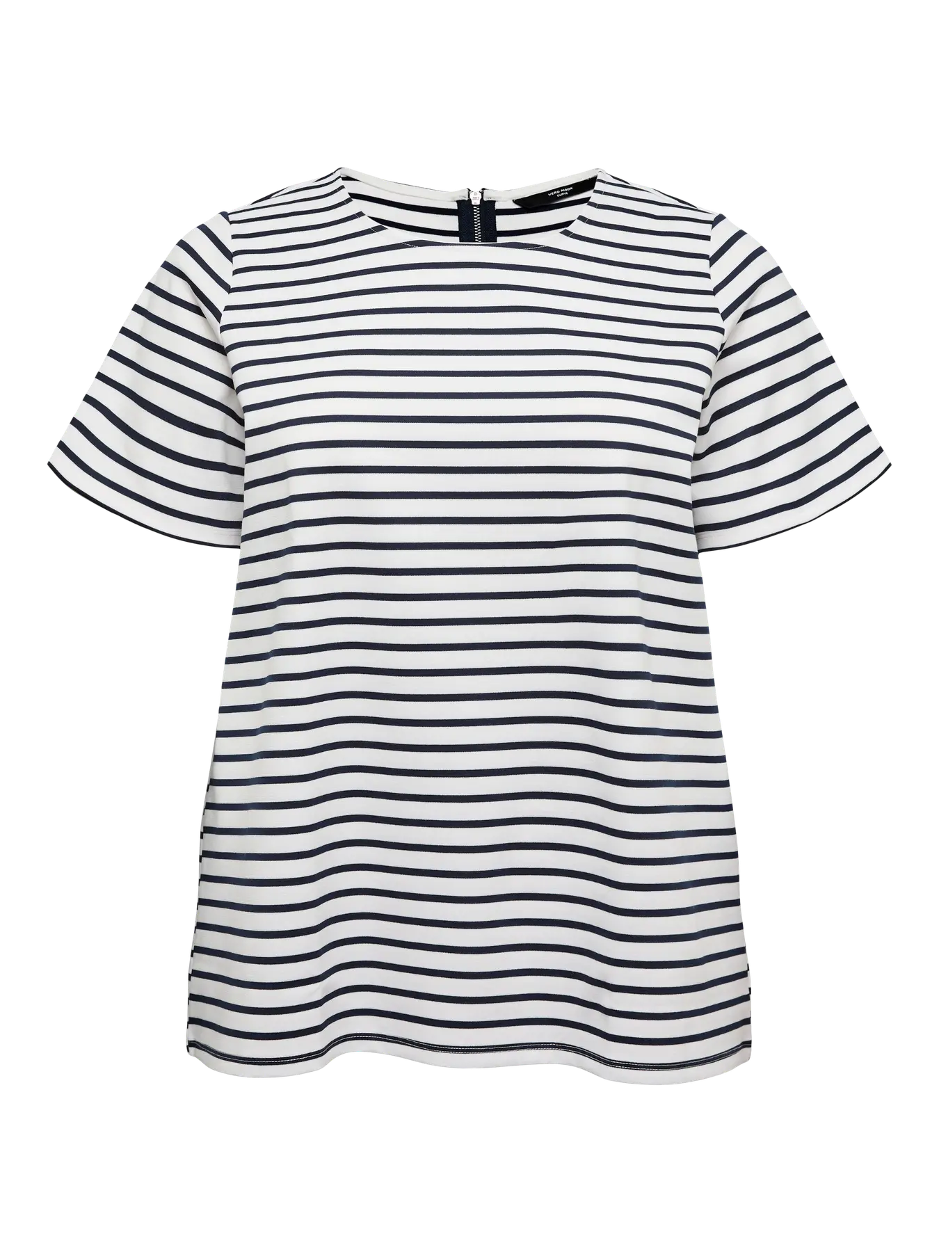 Denne toppen fra Vero Moda Curve kombinerer et tidløst uttrykk med moderne detaljer som passer perfekt i garderoben. De markante horisontale stripene gir et friskt utseende, mens den synlige glidelåsen ved halsutringningen tilfører litt ekstra kant til designet. Passformen er regular fit som er skapt for å falle fint over kroppens former uten å stramme.