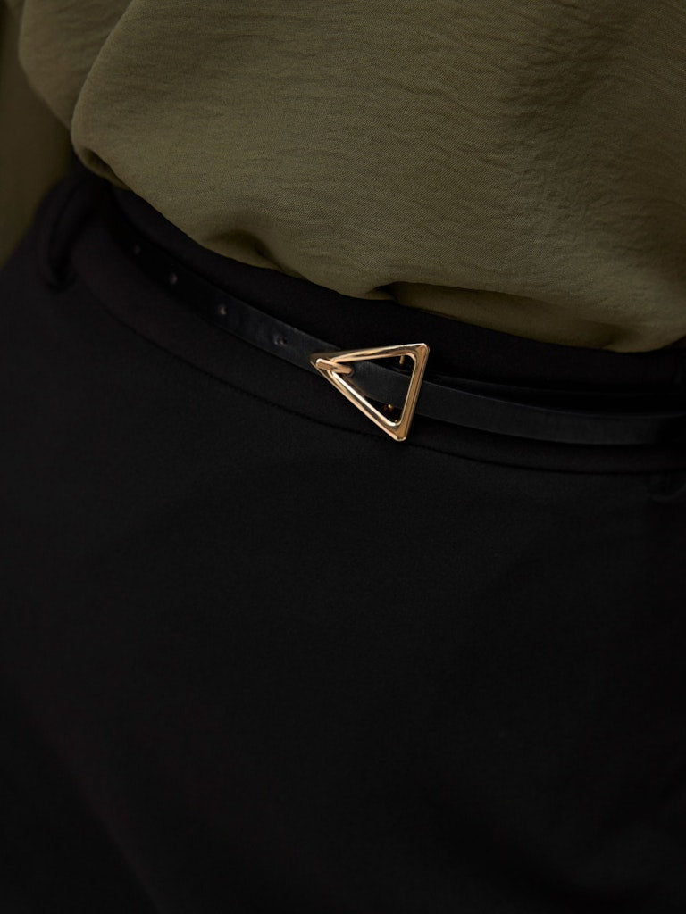 Det enkle sorte designet gjør det enkelt å bruke denne stylen fra dag til kveld, uansett om du ønsker et røft eller feminint uttrykk. Du kan skape en skarp hverdagslook ved å sette det sammen med et par støvletter og fargerike bluser, som kan puttes ned i linningen for å vise frem beltet. Til festlige anledninger fungerer splitten som en feminin detalj som lett kan kombineres med en fin topp og dine favorittsmykker.