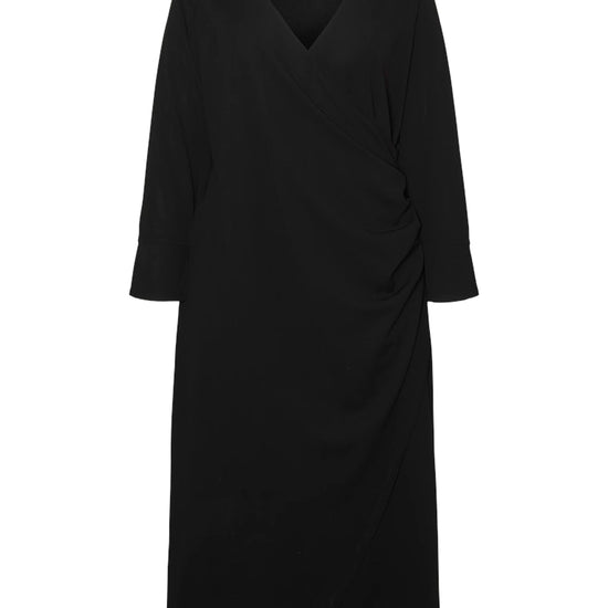 Opplev tidløs eleganse med denne sorte kjolen fra Vero Moda Curve . Kjolen er designet for å kombinere stil og komfort med sin vanlige passform, noe som sikrer en flatterende passform for alle kroppstyper. Med sitt elegante omslagssnitt og lange ermer er denne kjolen perfekt for både hverdagsbruk og festlige anledninger.