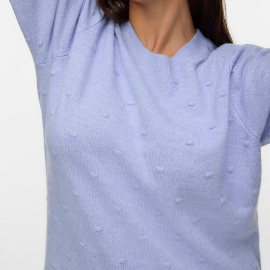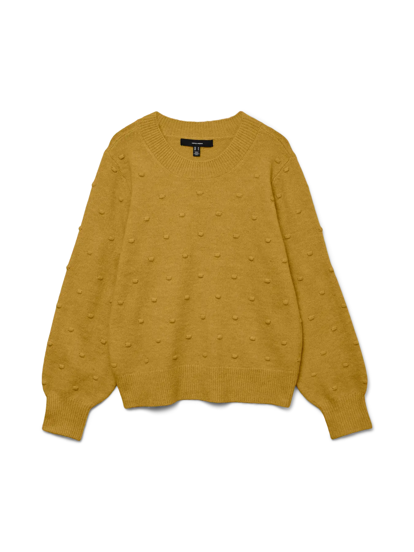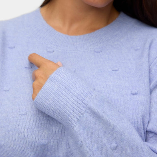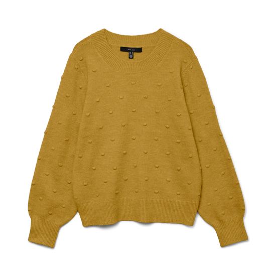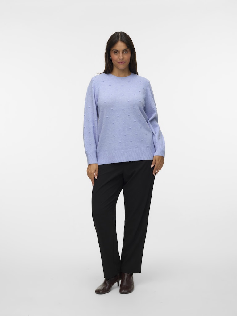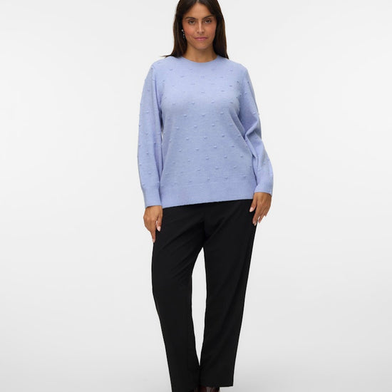 Denne herlige genseren fra Vero Moda Curve kjennetegnes av sitt fine mønster med små, hevede prikker som skaper liv i overflaten og gir et unikt uttrykk. Modellen har en kledelig rund halsutskjæring samt lange ballongermer, som avsluttes med en bred ribbekant for en flott og feminin silhuett. Strikken føles utrolig behagelig å ha på og har en klassisk passform som faller pent rundt kroppen.