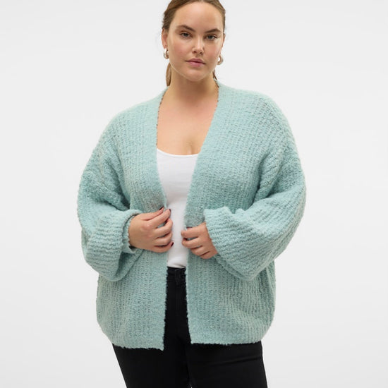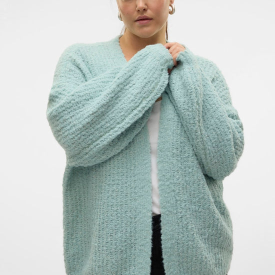 Kompletter garderoben din med den stilige Vero Moda Curve Knit Cardigan i fargen Grey Mist. Denne cardiganen er designet med en løs passform som gir en avslappet og moderne silhuett. Den er laget av en behagelig blanding av materialer, inkludert 49 % polyester, 31 % resirkulert polyester, 19 % bomull og 1 % elastan, noe som sikrer både komfort og holdbarhet.