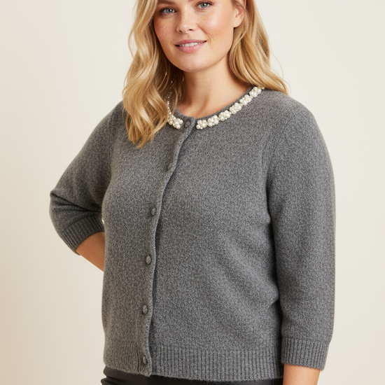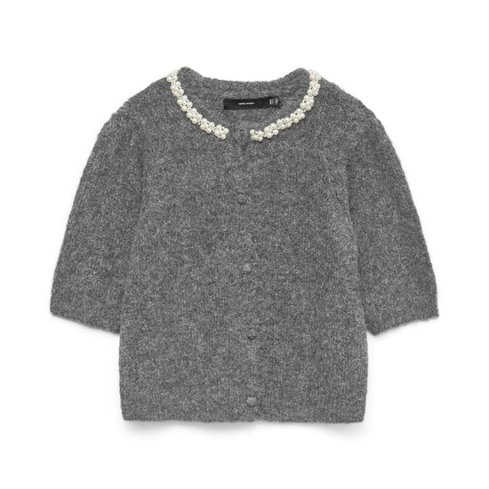 Grå cardigan med perledetaljer fra Vero Moda Curve