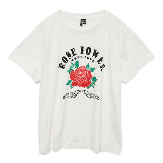 Få et stilfuldt og klassisk look med denne smukke T-shirt fra Vero Moda Curve. Designet i en elegant "Snow White ROSE POWER" farve, tilbyder denne T-shirt en perfekt blanding af komfort og stil. Den er skabt til at passe til kurvede kvindelige kroppe og har en regular fit, der sikrer en flatterende silhuet.