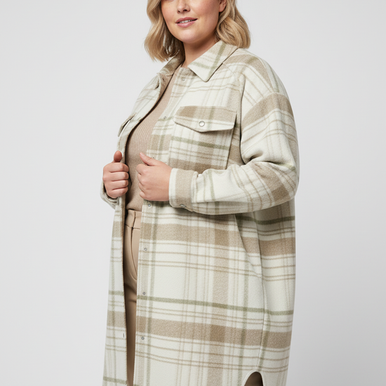Gi høstgarderoben et løft med denne lange boxy jakken fra Vero Moda Curve. Den har et klassisk ternet mønster i medium grønn, som gir et sofistikert og allsidig uttrykk til både hverdags- og festantrekk. Jakken er laget i lett og behagelig 100% polyester og har en elegant reverskrage som gir et stilig og feminint preg.