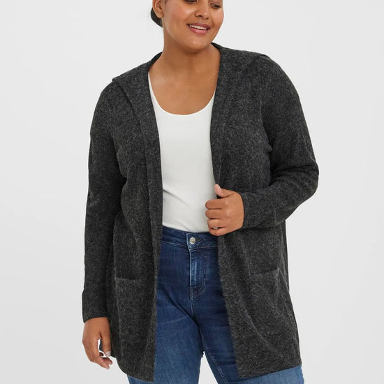 Åpen cardigan med hette og lommer, myk og stretchy kvalitet