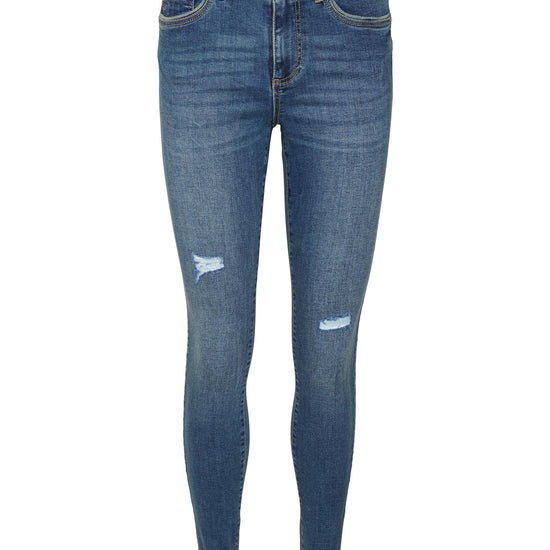 Jeans med vanlig midje, 5-lommers modell, ødelegger detaljer