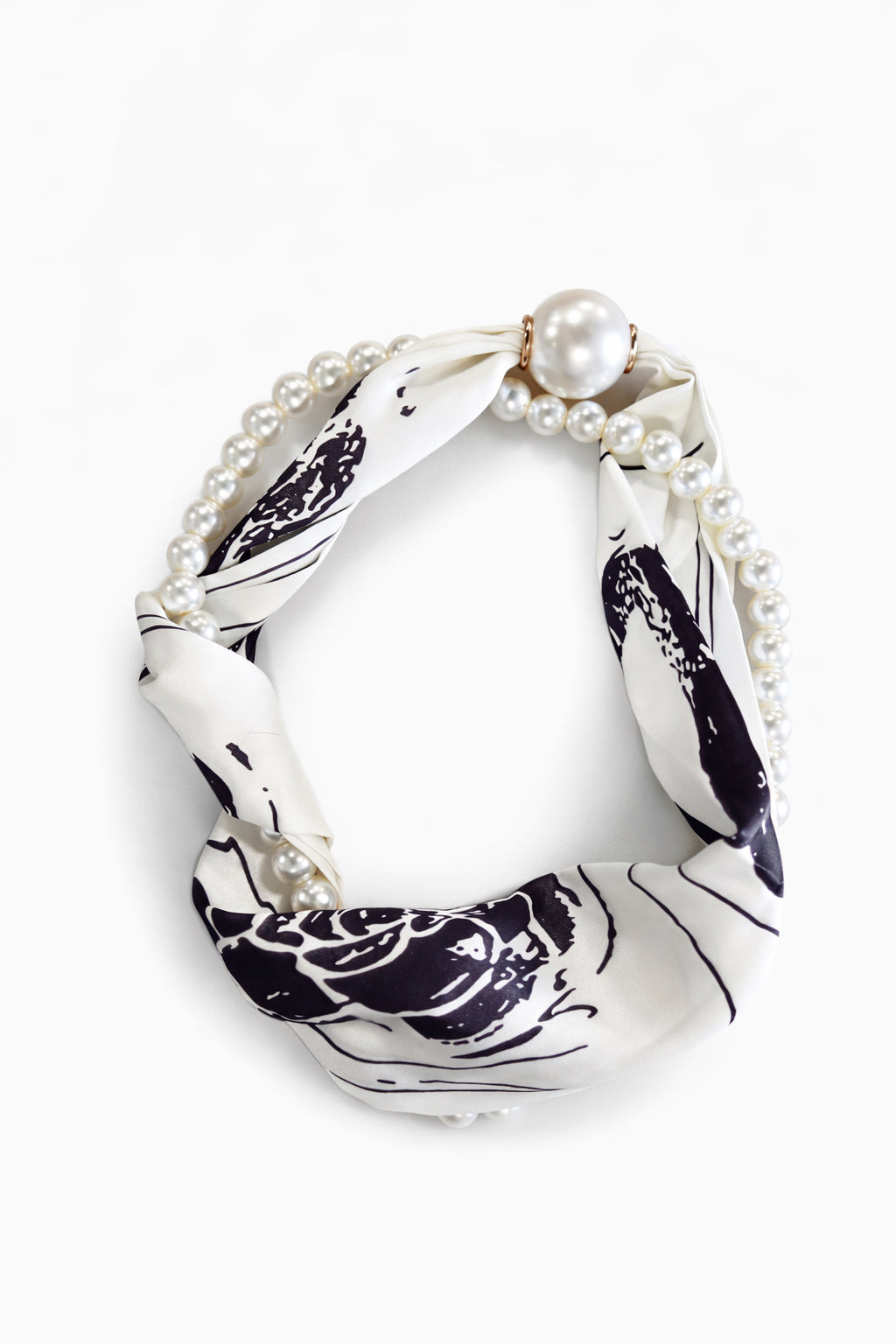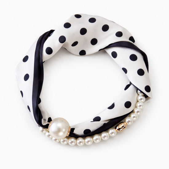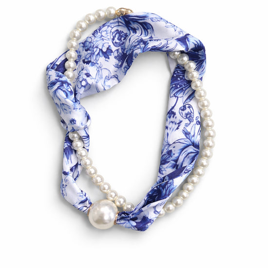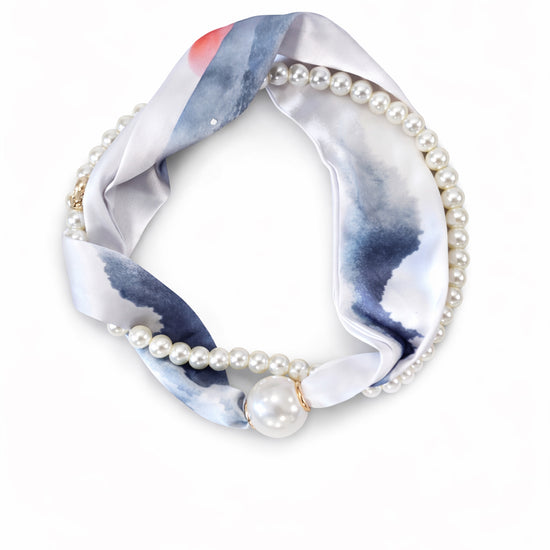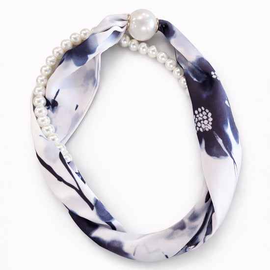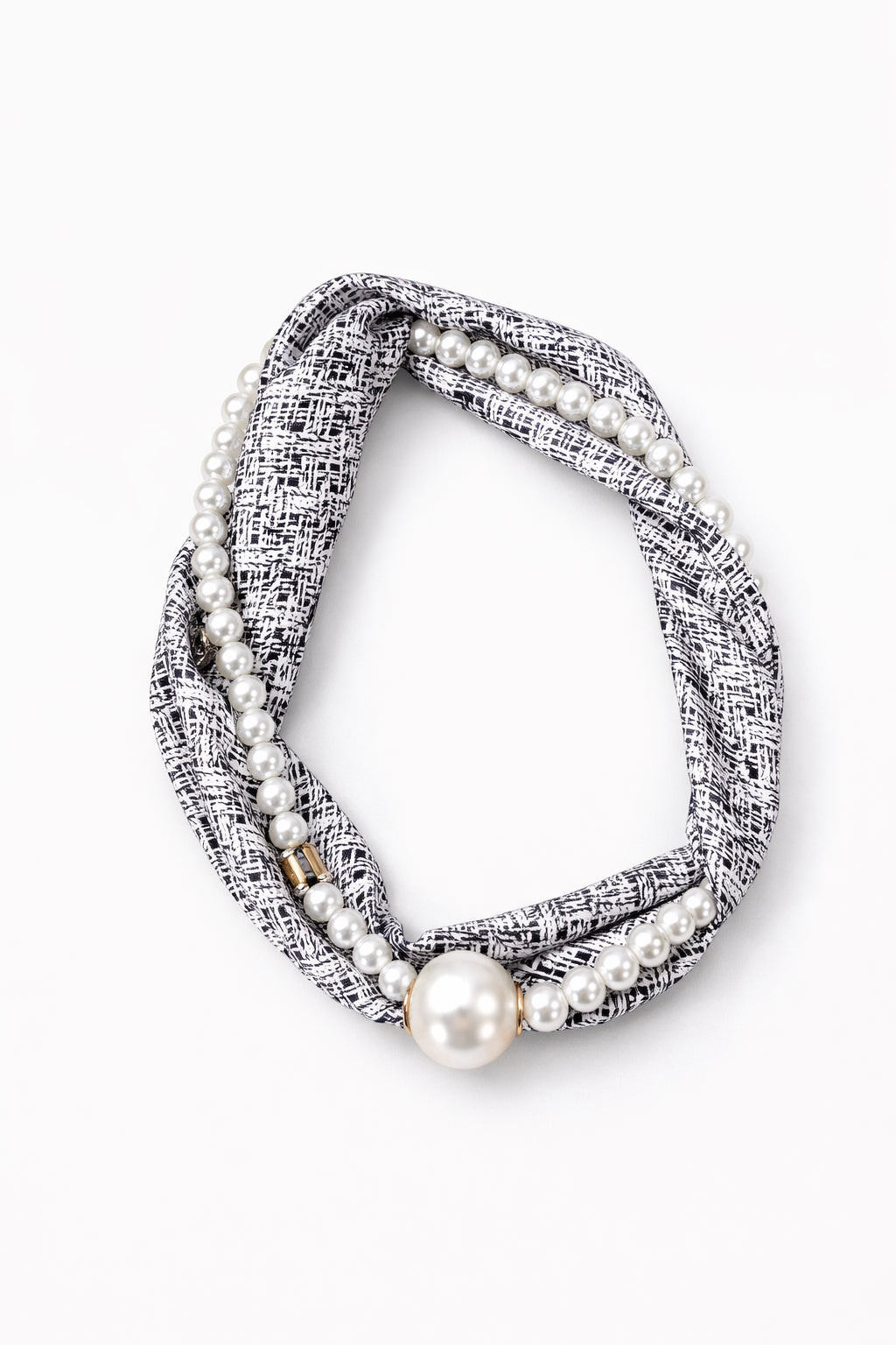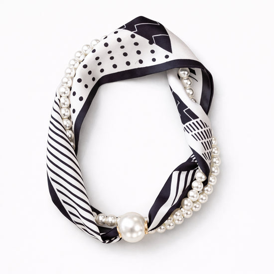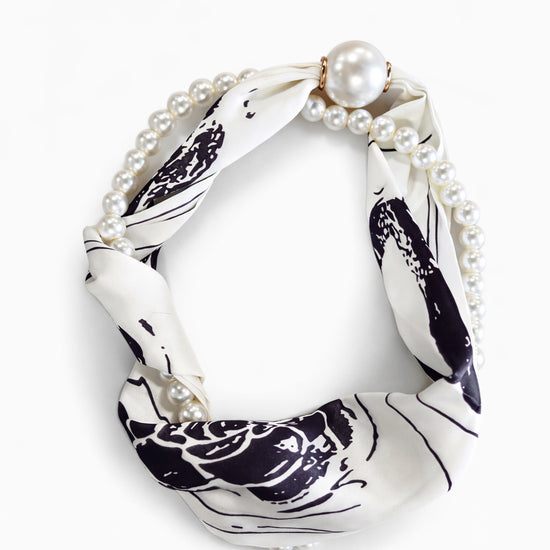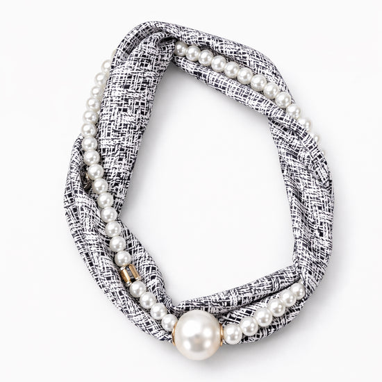 To-delt tørklæde/smykke med magnetlukning.