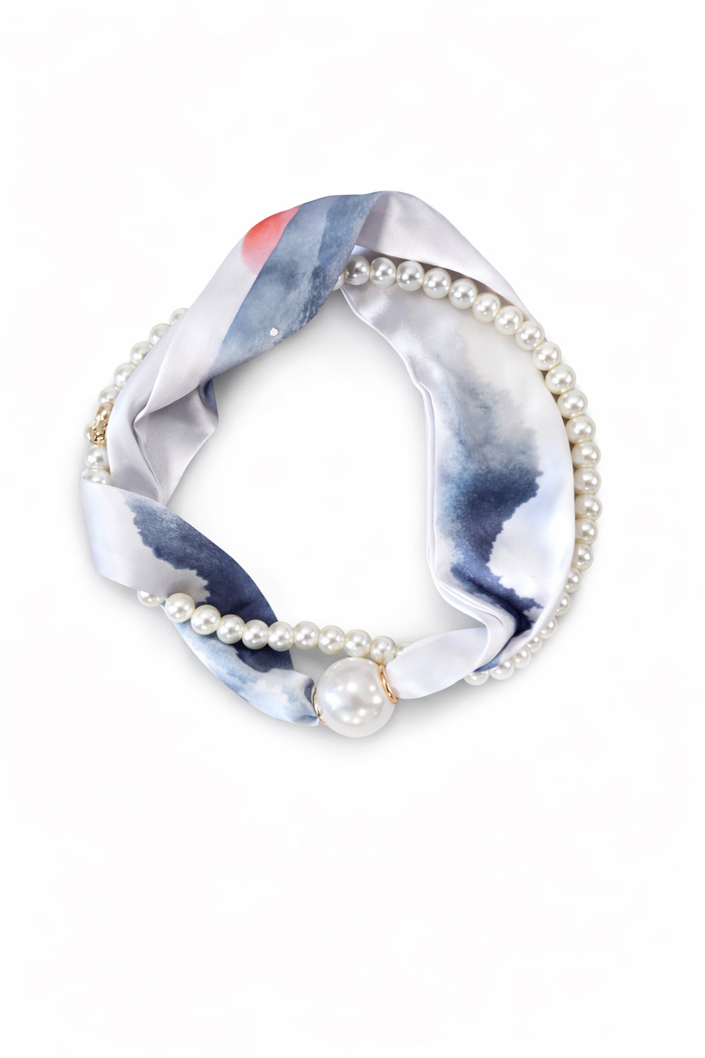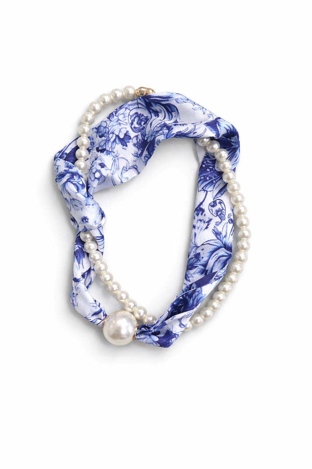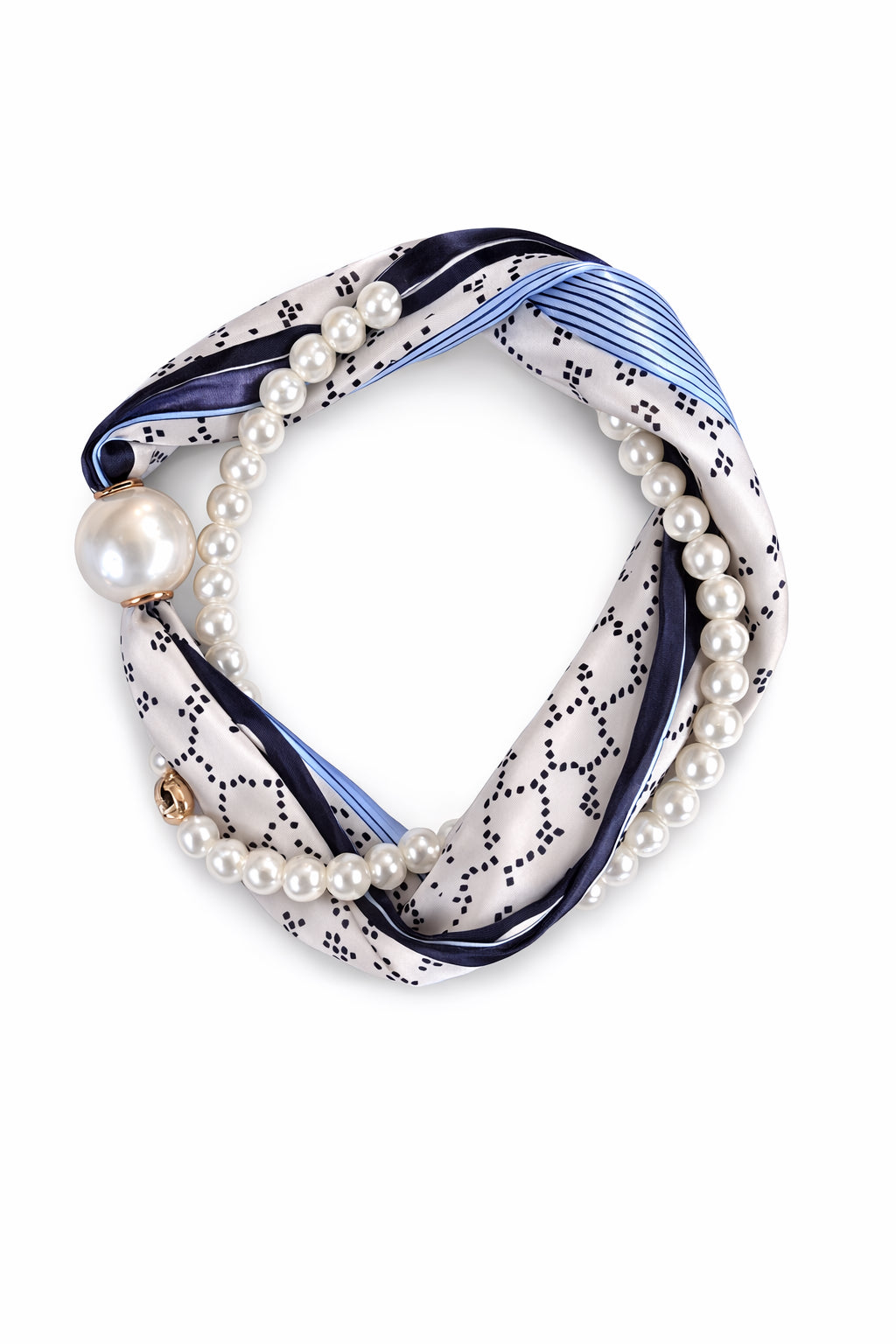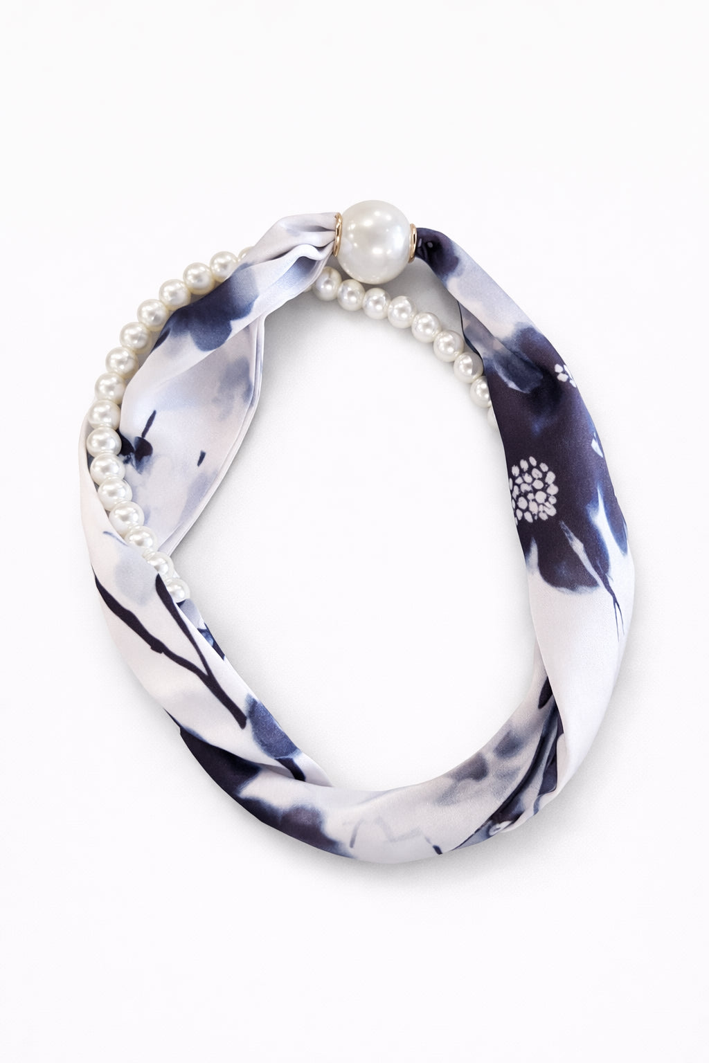 To-delt tørklæde/smykke med magnetlukning.