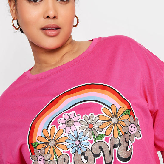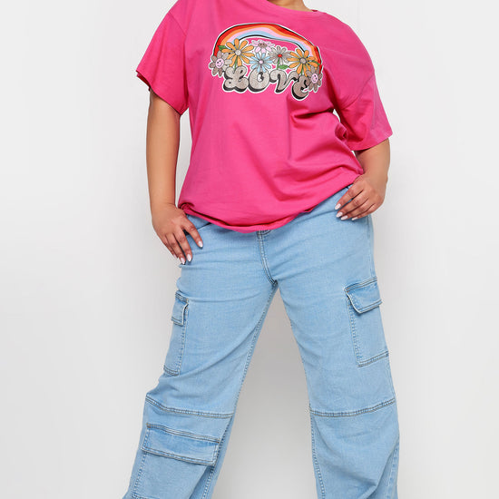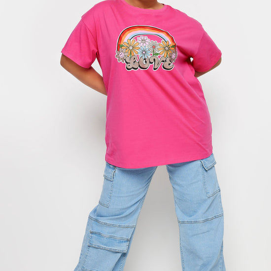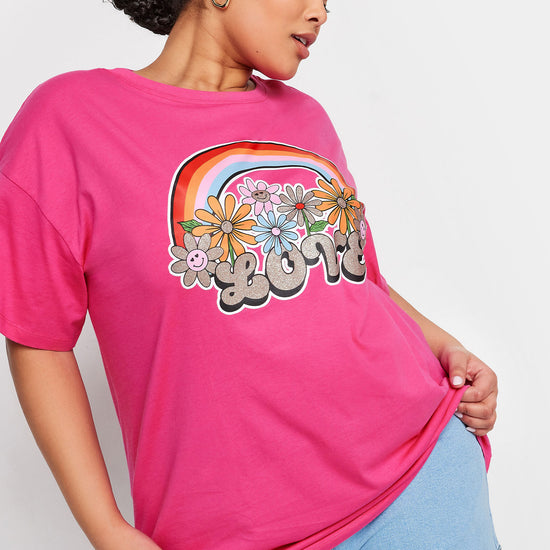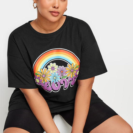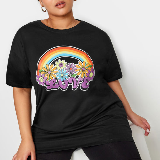 YoRainbow Print Slogan Oversized T-skjorte