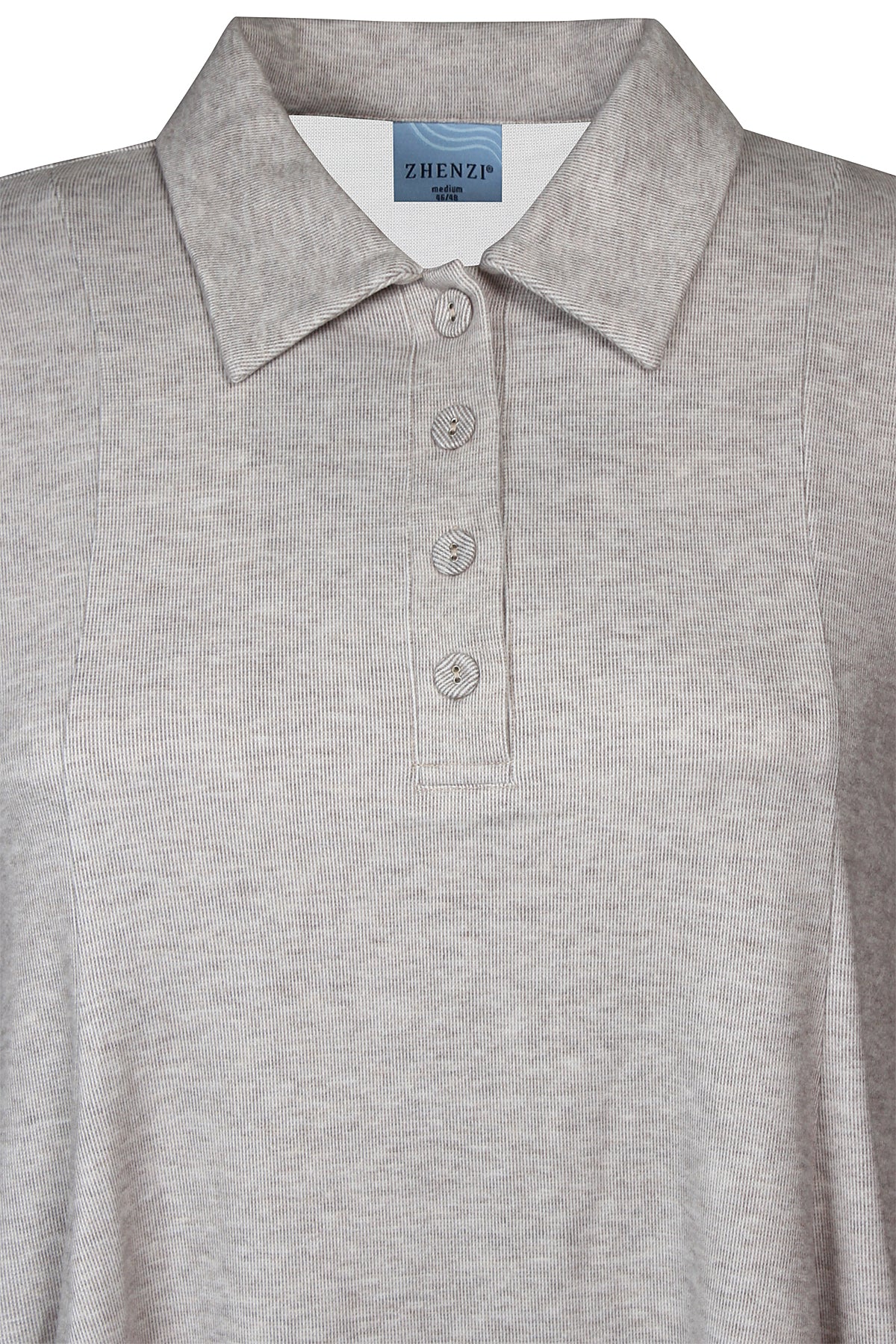 Tunikaen har et lett A-formet snitt som faller pent ned over kroppen uten å stramme, noe som gir en flatterende silhuett. De elegante detaljene som polokragen og de markerte ermeavslutningene løfter denne Zhenzi-tunikaen og gjør den til et allsidig valg. Den melerte strukturen i stoffet tilfører i tillegg dybde og liv til uttrykket.