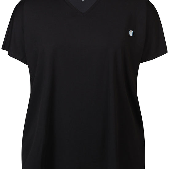 Denne t-skjorten er designet med fokus på komfort og har et enkelt uttrykk som passer inn i enhver garderobe. Modellen har en flatterende V-hals og korte ermer som faller mykt ned over skuldrene for en avslappet look. På brystet synes et lite, diskret logo som tilfører en fin detalj, og den romslige passformen sikrer god bevegelsesfrihet.