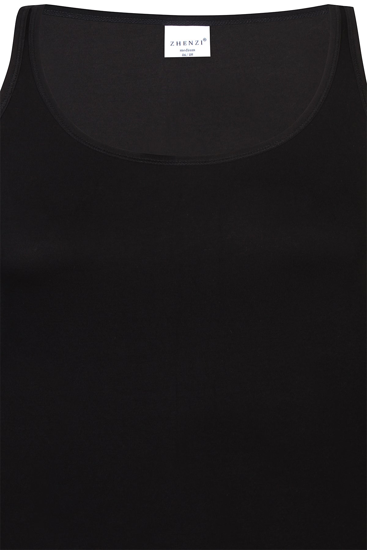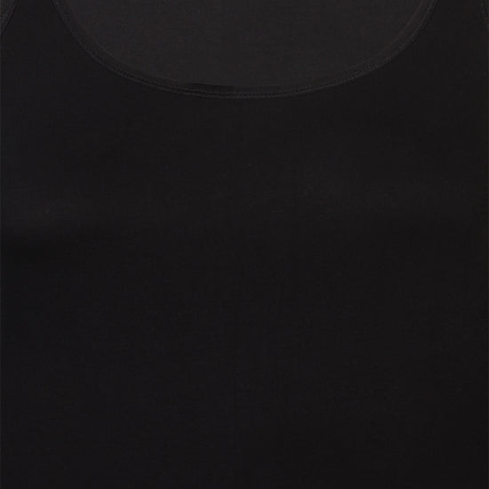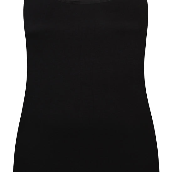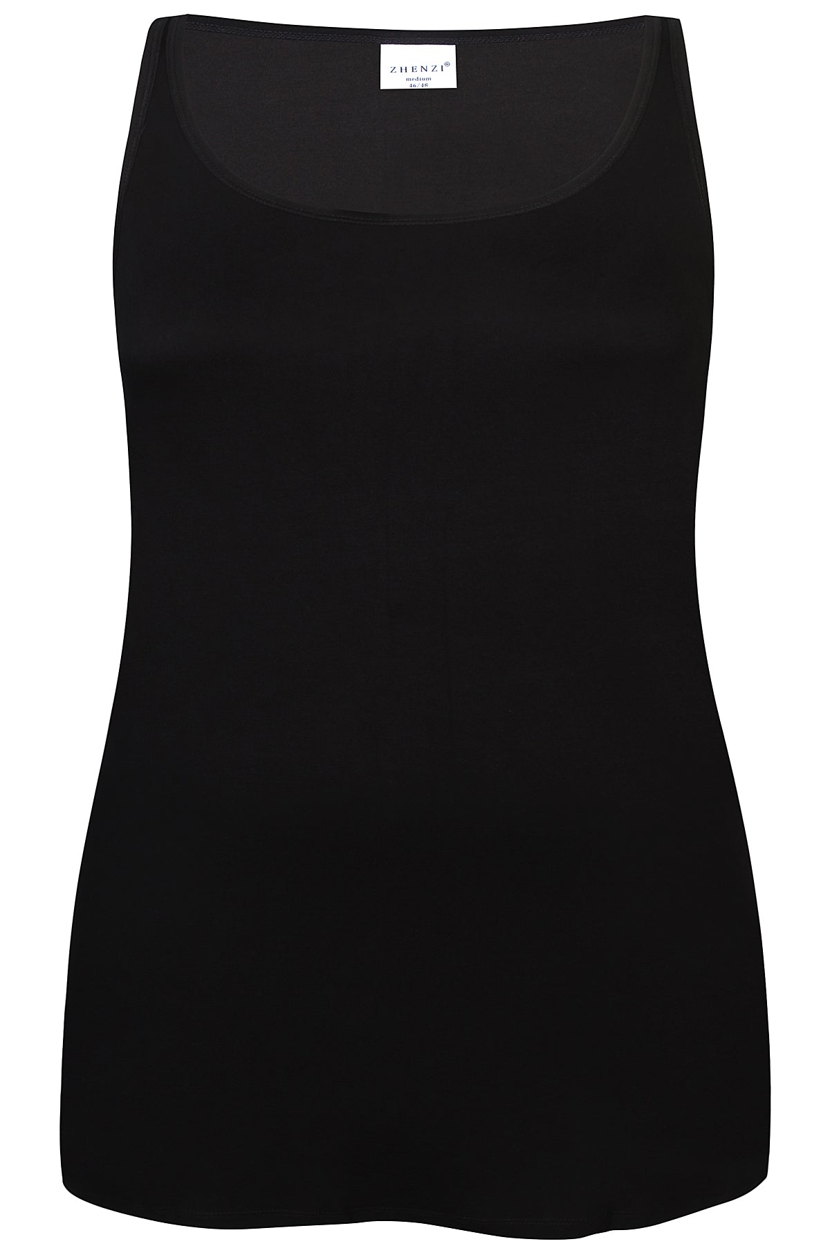 Denne sorte topp fra ZHENZI er laget i en luksuriøs blanding av 95% bambus og 5% elastan, som gir en utrolig myk og pustende følelse mot huden. Materialet sikrer god elastisitet og et flatterende fit hele dagen. Toppen har brede skulderstropper og rund hals, noe som gjør den til et stilrent og praktisk valg for enhver anledning.