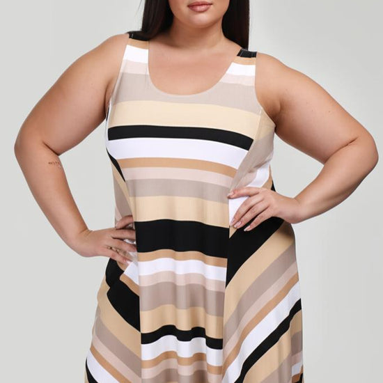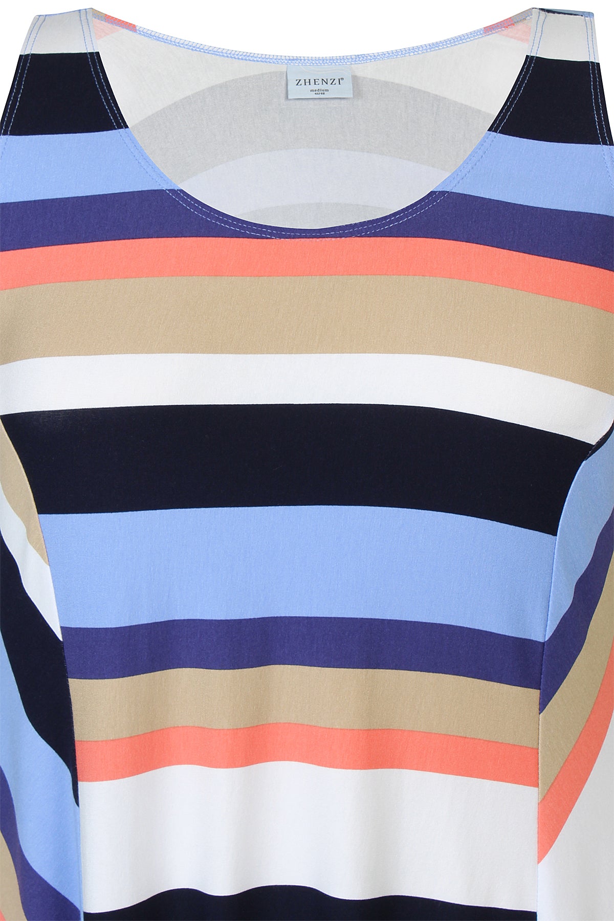Tunikaen er designet med brede, iøynefallende striper som skaper et moderne utseende. Den runde halsen og ermeløse designet gjør den ideell for lag-på-lag-styling eller som et statement-plagg i seg selv. Enten du velger å bruke den til jobb, en kveld ute, eller en avslappet dag hjemme, sikrer denne tunikaen fra Zhenzi at du ser fantastisk ut og føler deg komfortabel.