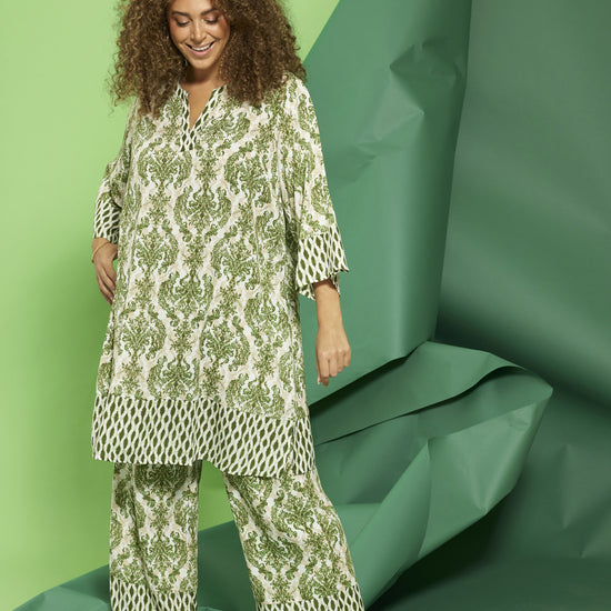 Uansett om du skal til en uformell brunch eller en mer formell begivenhet, kan denne tunikaen styles på mange måter. Prøv å kombinere den med et par matchende bukser for et gjennomført utseende. Se vårt utvalg av plus size bukser for å finne den perfekte kombinasjonen.