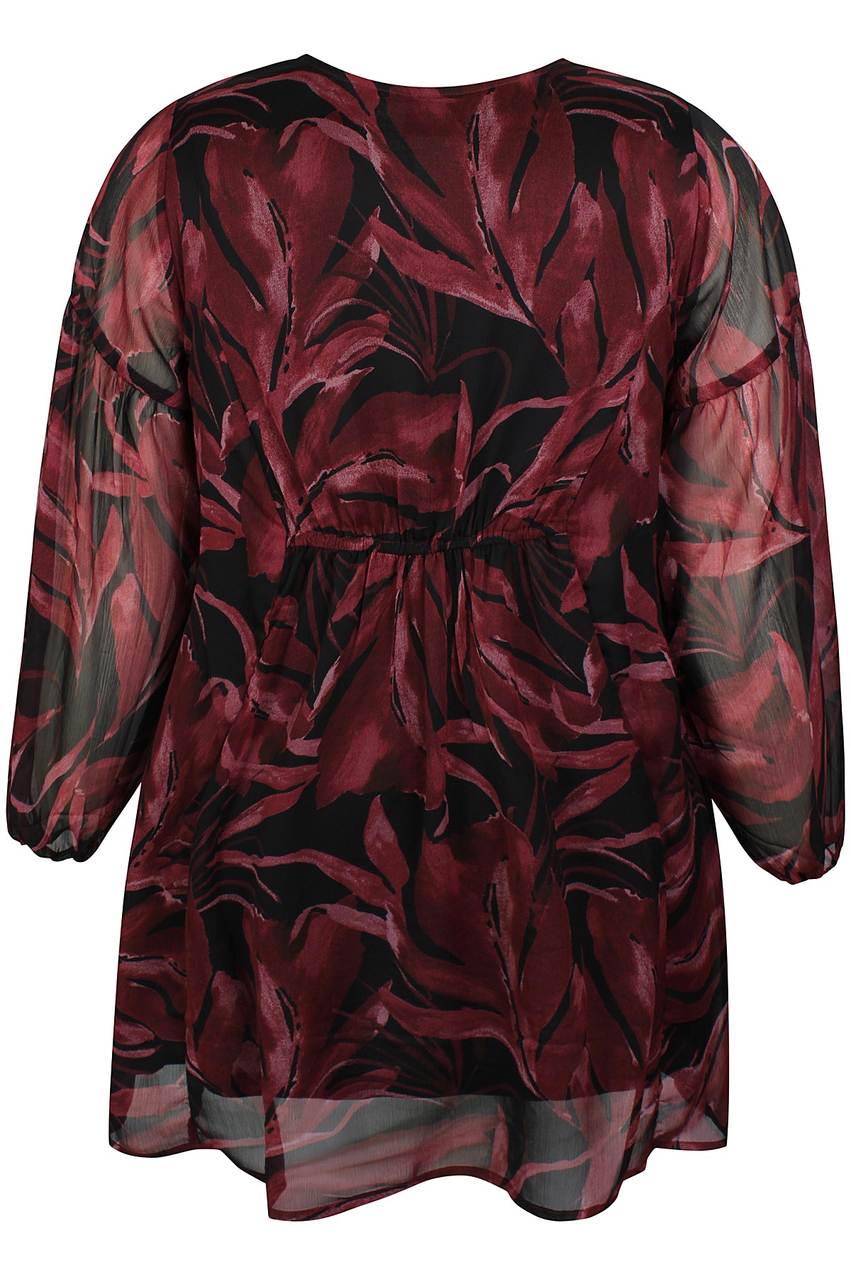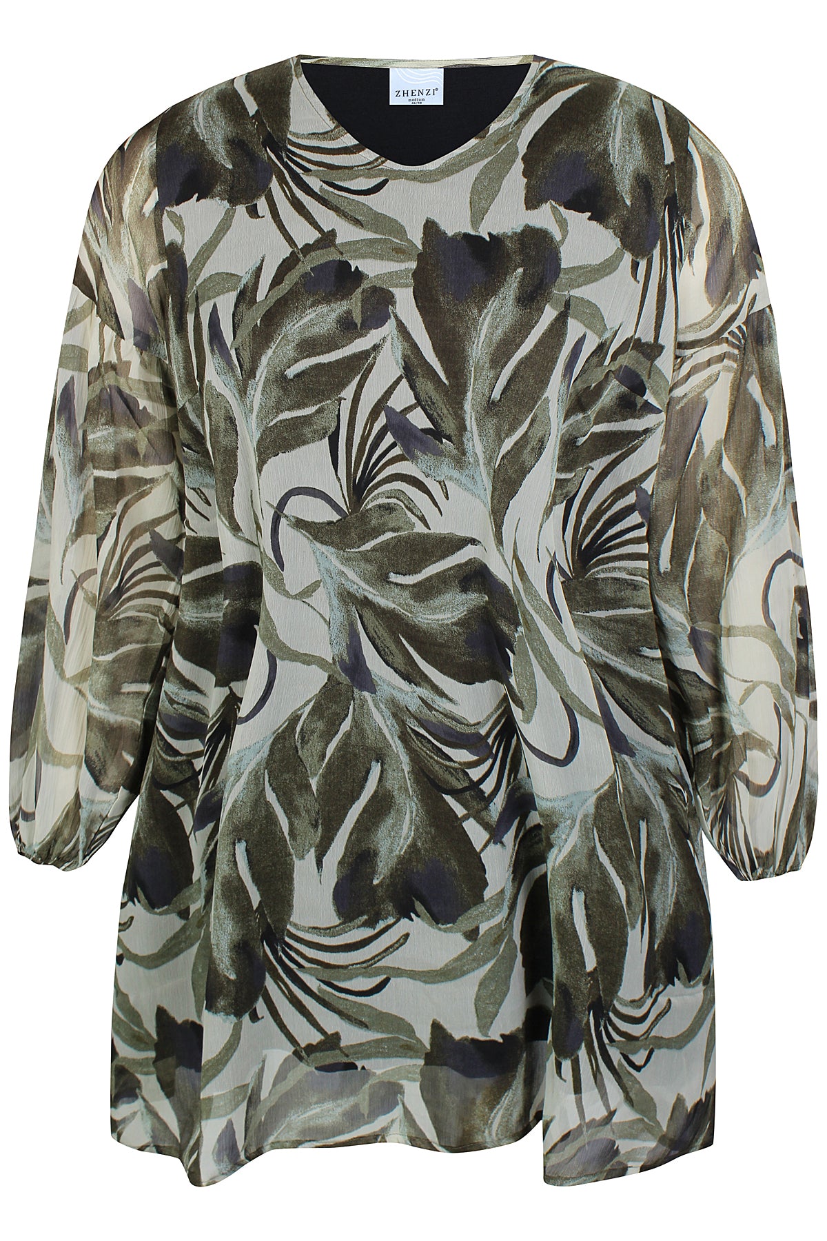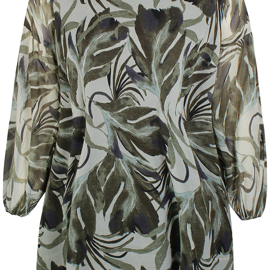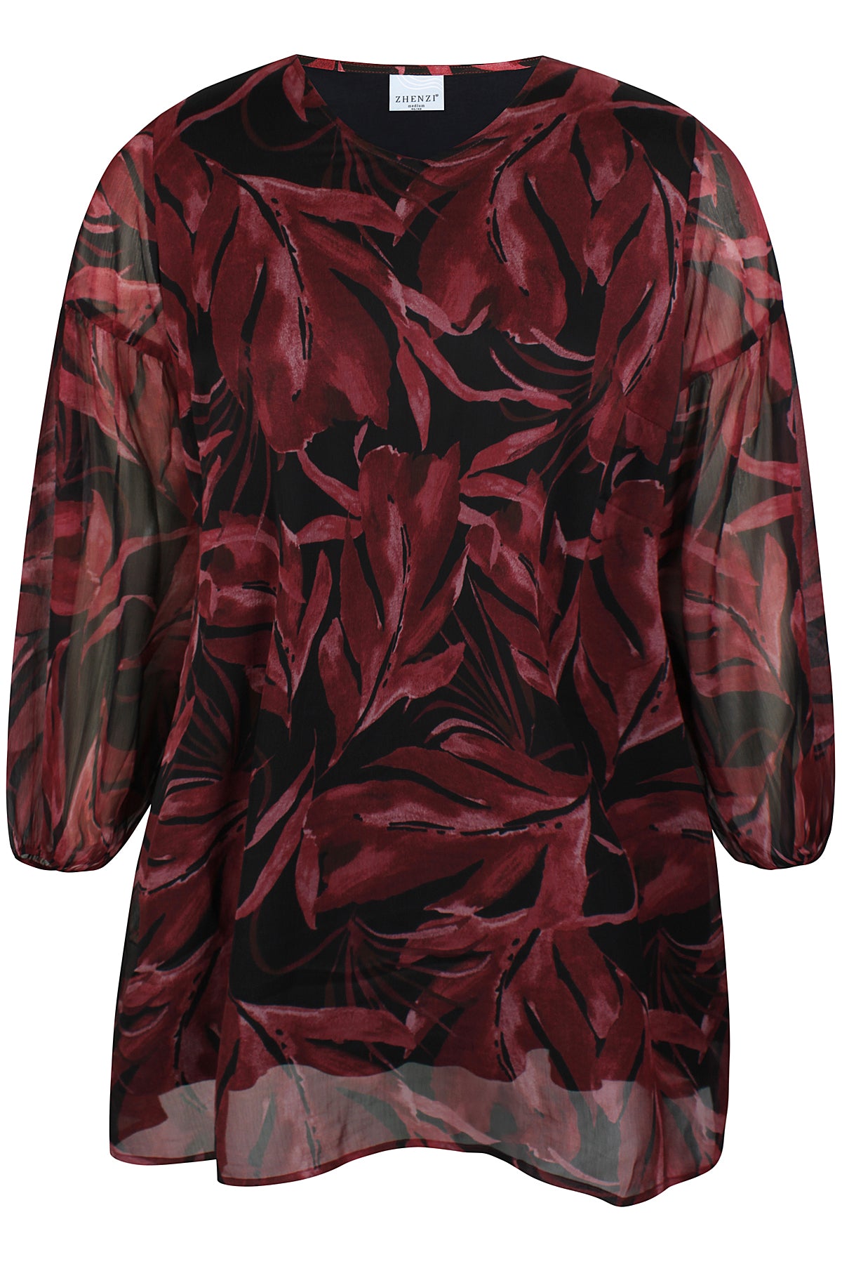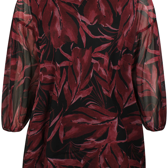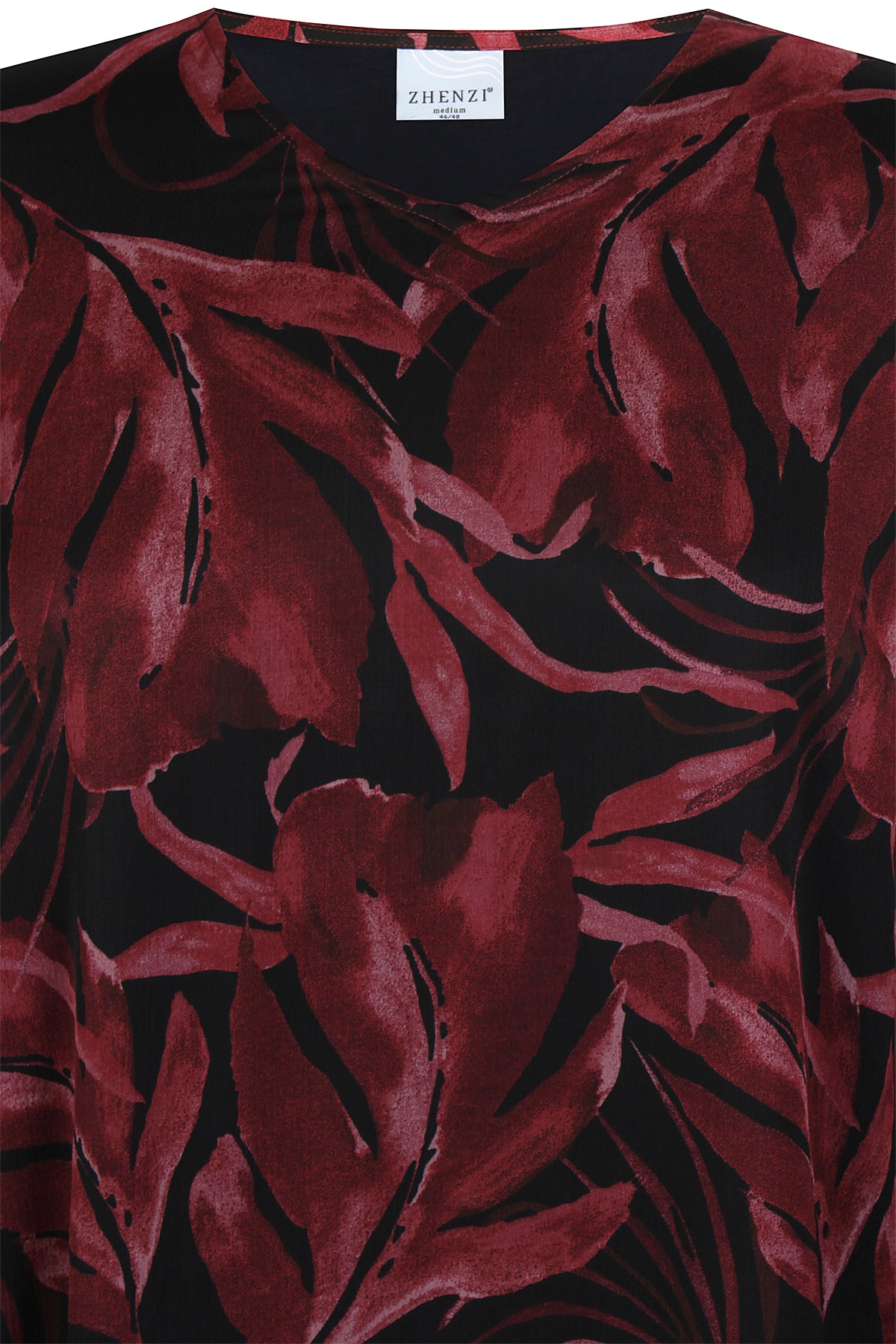 Skap et friskt uttrykk med denne vakre tunikaen fra Zhenzi. Tunikaen kombinerer moderne botanisk print i dype maroon og delikate stone green nyanser med en avslappet, flatterende passform. Komfort møter stil med følgende detaljer: