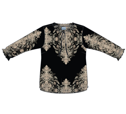 - Lange ermer med bølget kant og nydelige detaljer