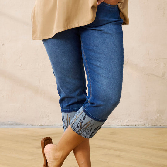 Disse velsittende buksene fra Zhenzi er det opplagte valget for deg som ønsker et par klassiske olabukser med en feminin vri. Modellen er designet i en flott blåfarge kalt Midnight Sapphire og har en kortere benlengde som går til like under kneet for et lett uttrykk. Det mest iøynefallende ved disse knickers er den brede oppbretten ved kanten, som er utsmykket med et dekorativt botanisk trykk i dempede naturfarger som tilfører kant til designet.