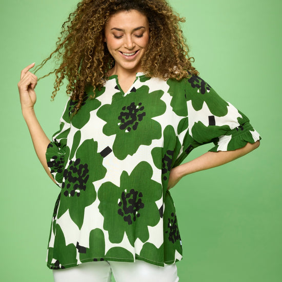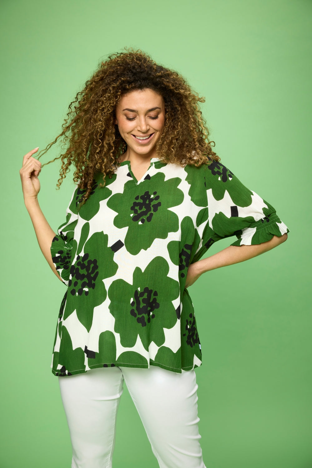 Blusen er ideell for de som ønsker å tilføre et fargerikt element til antrekket sitt. Kombiner den med et par svarte shorts eller jeans for et stilig og moderne utseende. Enten du er på vei til en avslappet lunsj eller en dag på kontoret, vil denne blusen fra Zhenzi gi deg den perfekte kombinasjonen av komfort og stil. Utforsk flere vakre stiler i vår Zhenzi kolleksjon eller finn flere bluser i vårt sortiment.