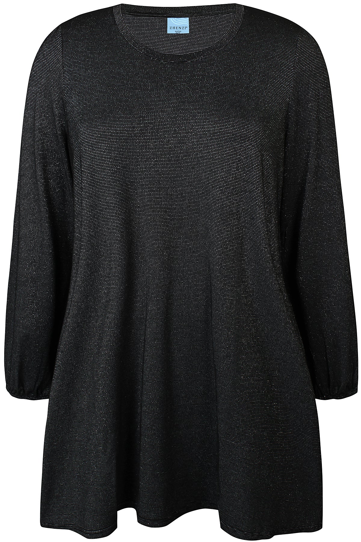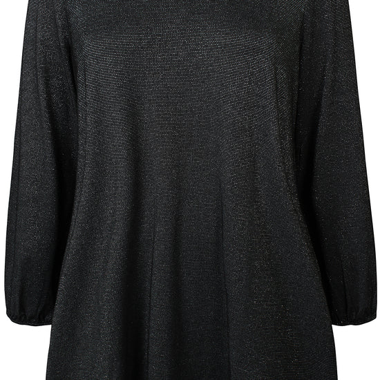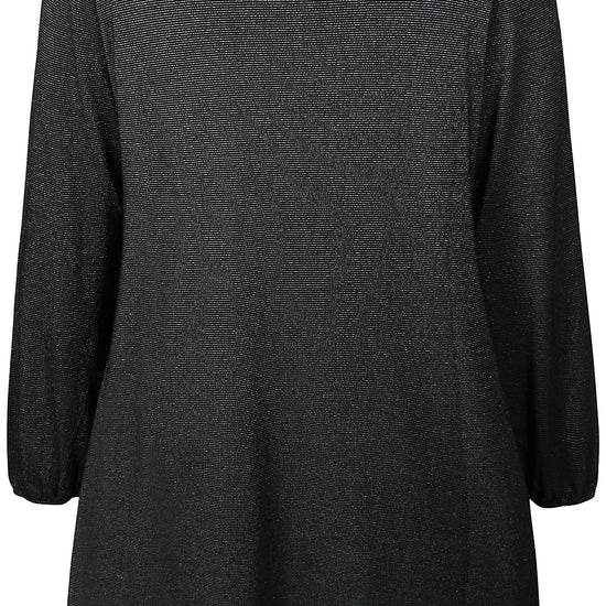 Gi garderoben din et løft med denne sorte tunika fra Zhenzi, designet for deg som ønsker både stil og komfort. Modellen har en løs og flatterende passform, rund hals og lange ermer med elastisk kant for en elegant puff-effekt. Stoffet er lett skinnende med diskret glimmer, som gir antrekket et eksklusivt preg – perfekt til både hverdag og fest.