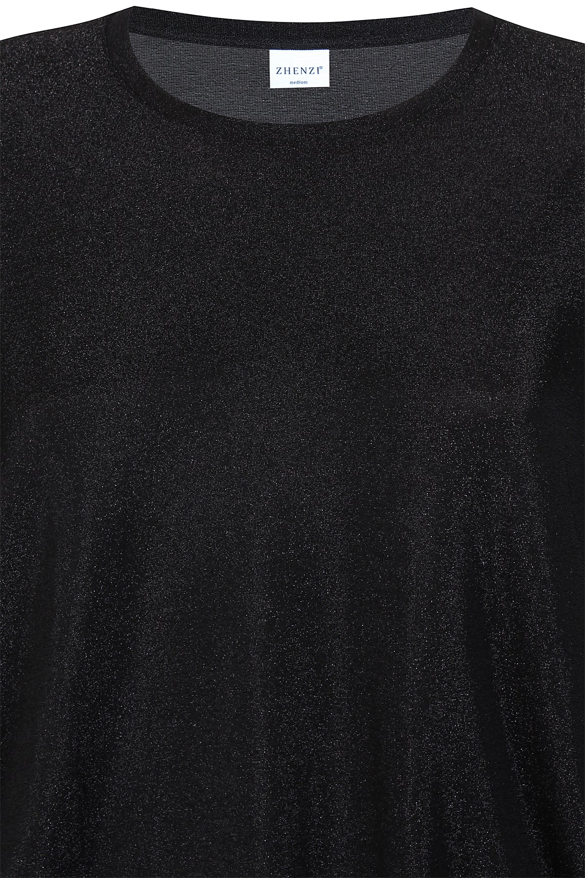 Ta antrekket ditt til nye høyder med denne stilfulle blusen fra Zhenzi. Kombinasjonen av sort og sølv gir et moderne uttrykk, mens det lette materialet med lurex gir et vakkert glitrende preg. Passformen er behagelig og flatterende med en rygglengde på 72 cm (målt i str. M).