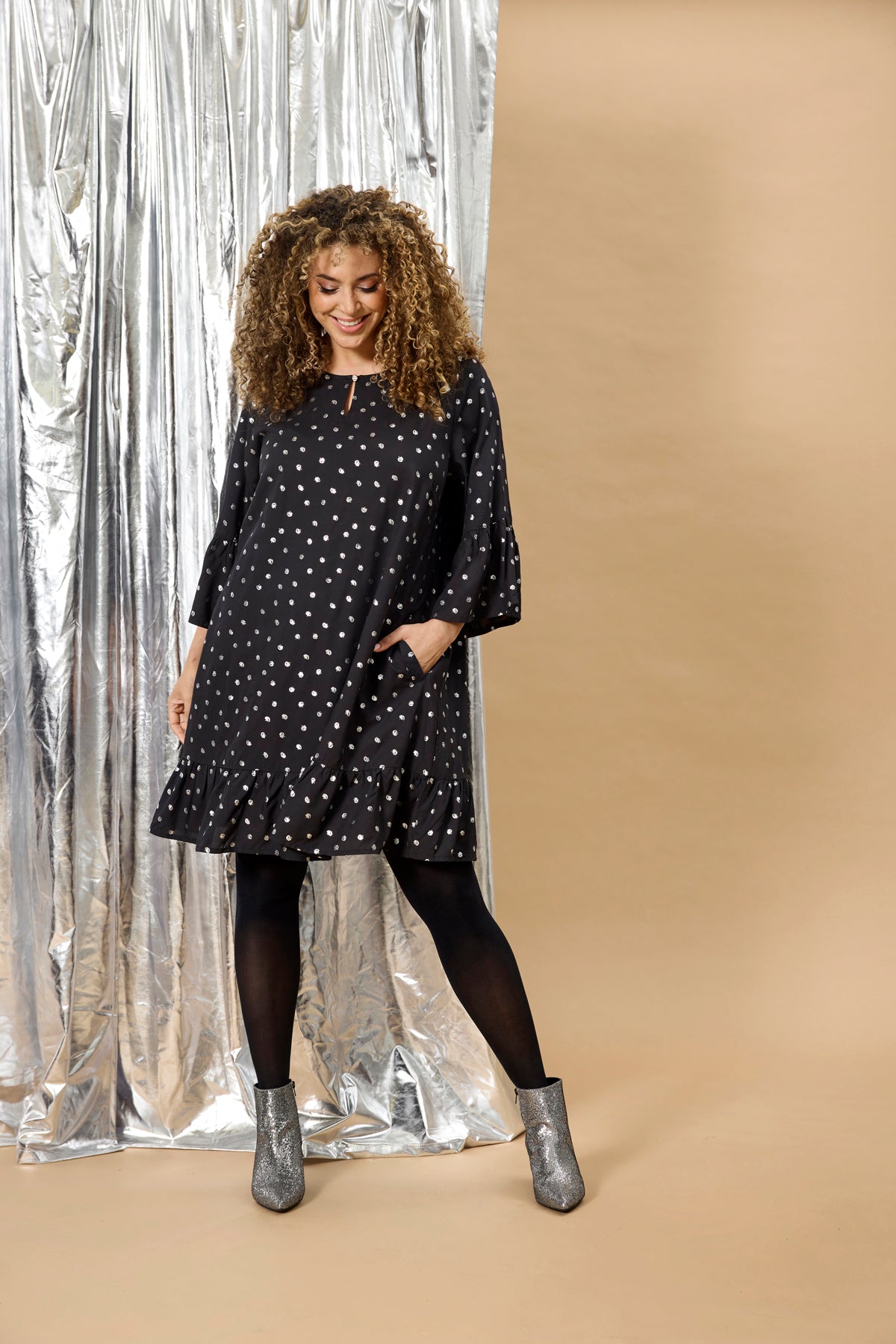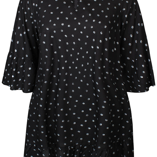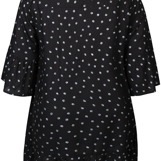 En sort tunika fra Zhenzi er alltid et sikkert valg til enhver anledning. Denne modellen er laget i 100% viskose, som gir et lett og luftig uttrykk med god komfort. Passformen er romslig, og rygglengden er 95 cm i størrelse M – perfekt for deg som ønsker bevegelsesfrihet og et flatterende snitt.