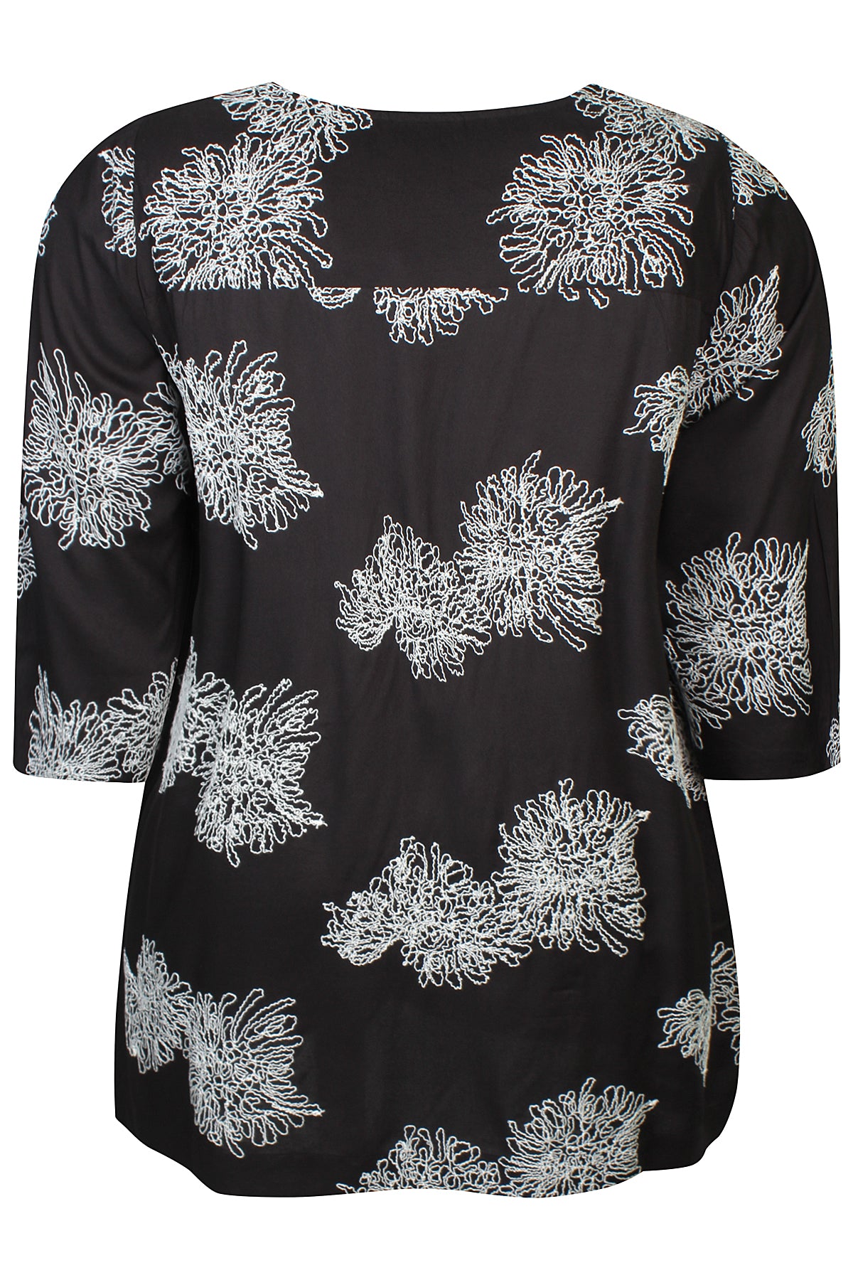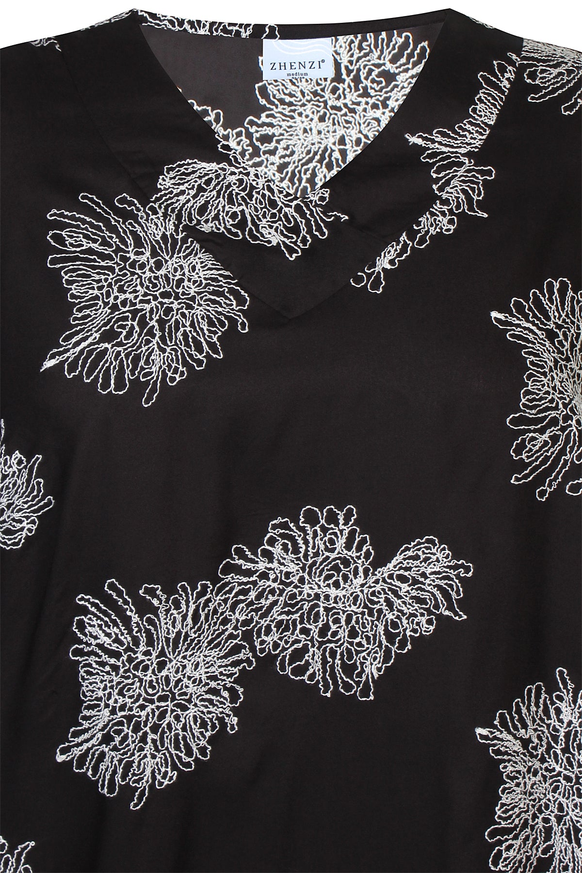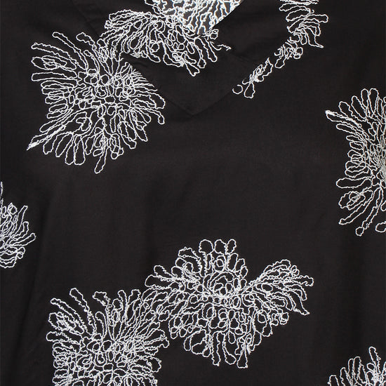 - Farve: Sort med abstrakt hvidt broderet mønster