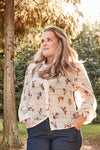 Denne smukke skjorte fra ZOEY er et must-have i enhver garderobe. Den kan styles på et utal af måder – brug den sammen med et par jeans for et afslappet look, eller kombiner den med en elegant nederdel for en mere formel anledning. Uanset hvordan du vælger at style den, vil denne ZOEY bluse tilføje et strejf af elegance og farve til dit outfit.
