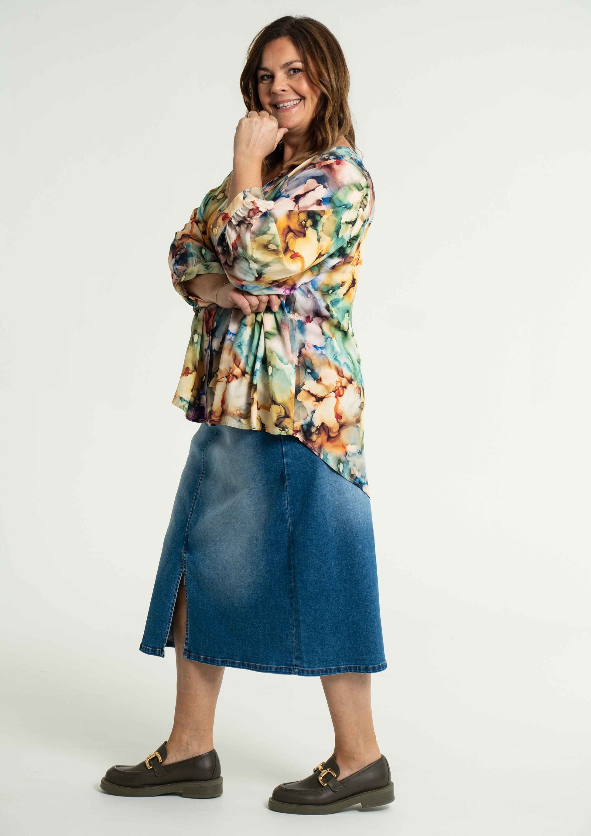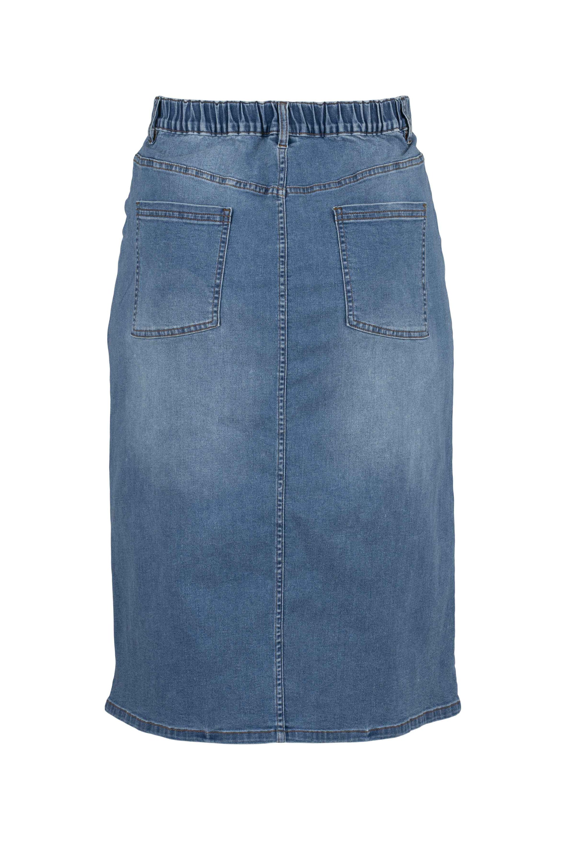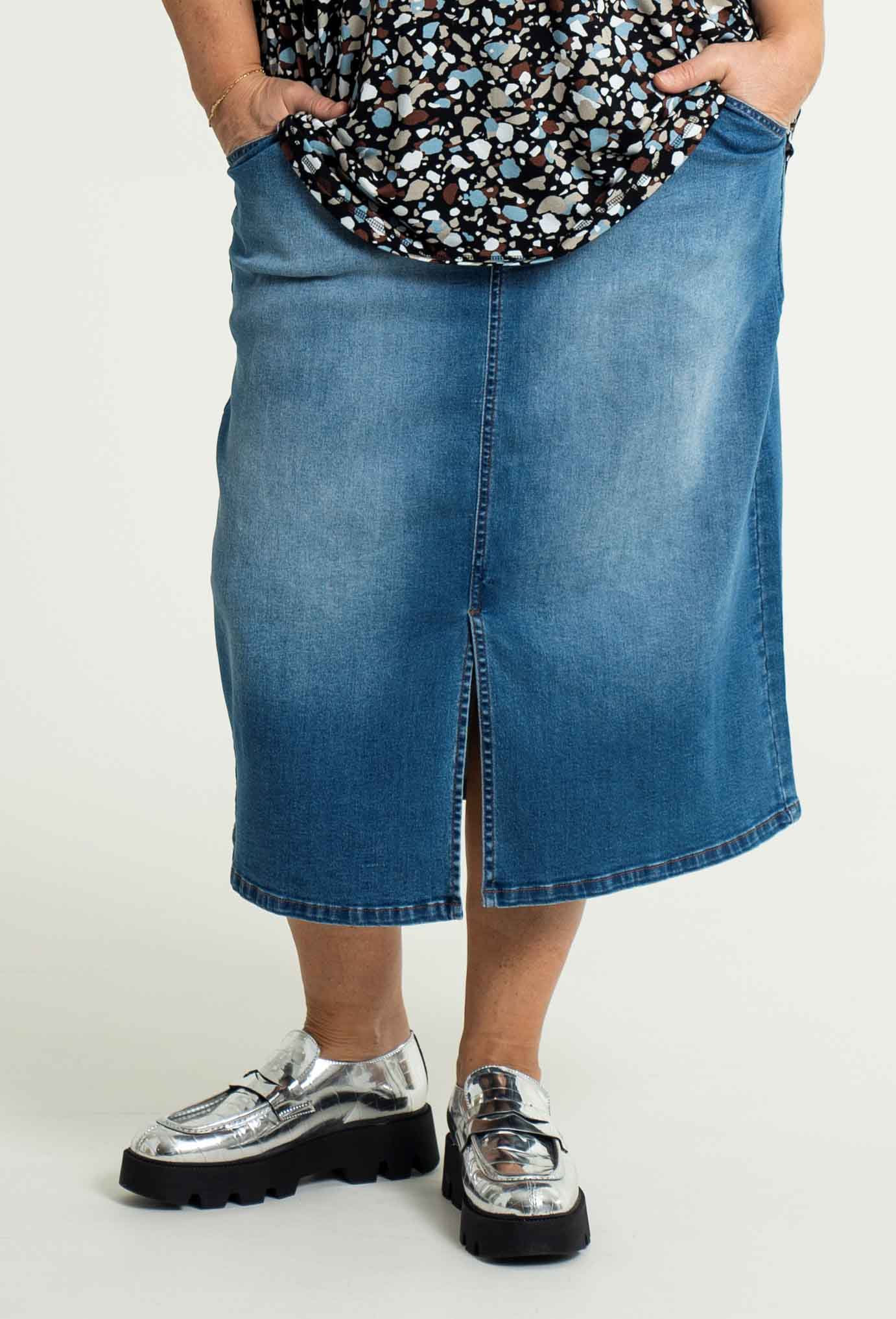 Tilføj et tidløst og alsidigt stykke til din garderobe med den skønne lange denim nederdel fra Gozzip Woman. Denne nederdel er fremstillet i en blød blanding af bomuld, viskose og elastan, der sikrer både komfort og bevægelsesfrihed. Med en elastisk linning i ryggen samt en knap- og lynlåslukning foran, kombinerer den funktionalitet med et stilfuldt look.
