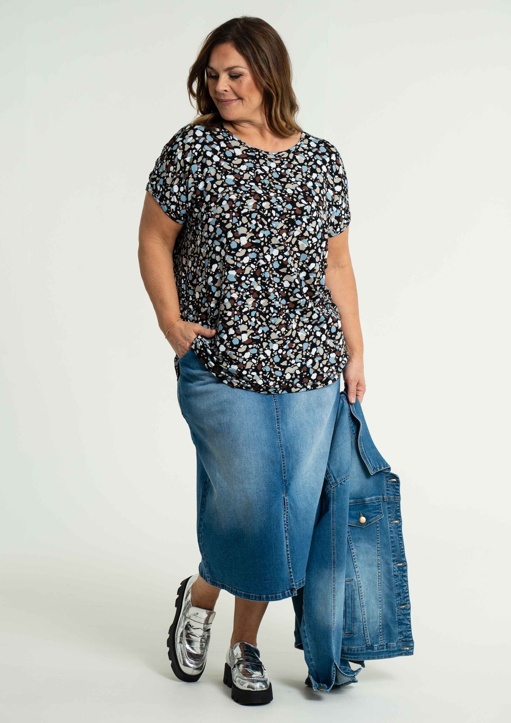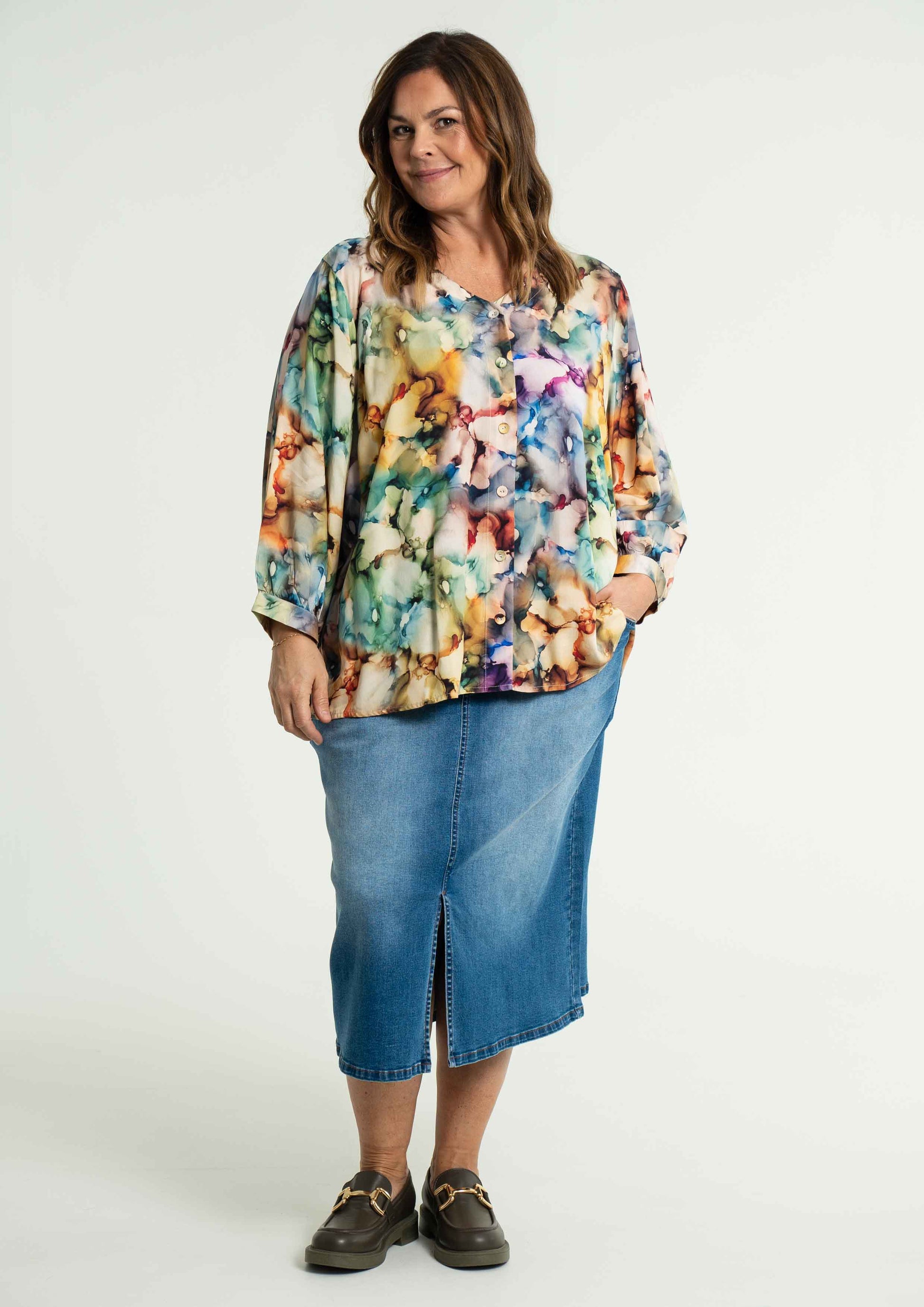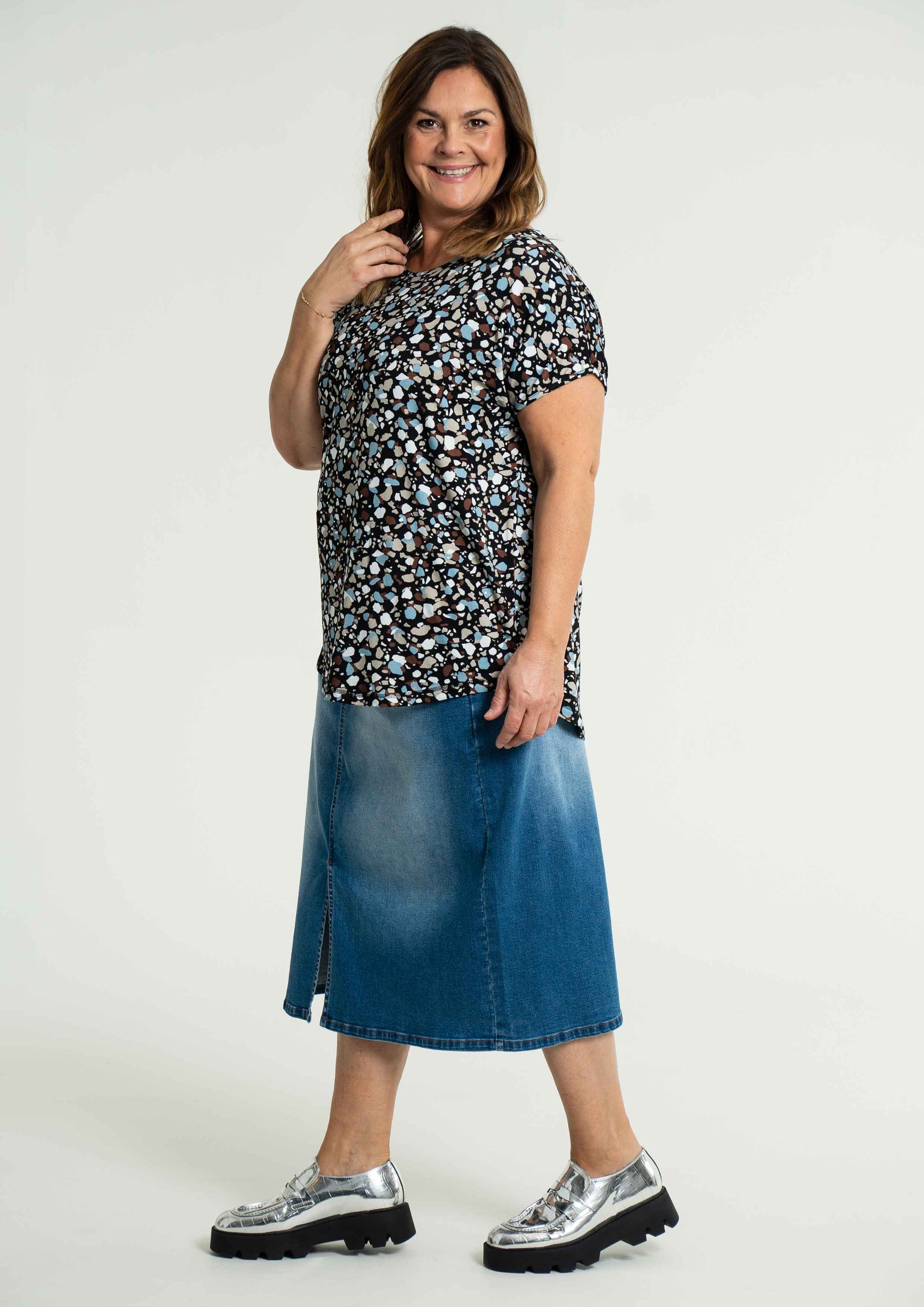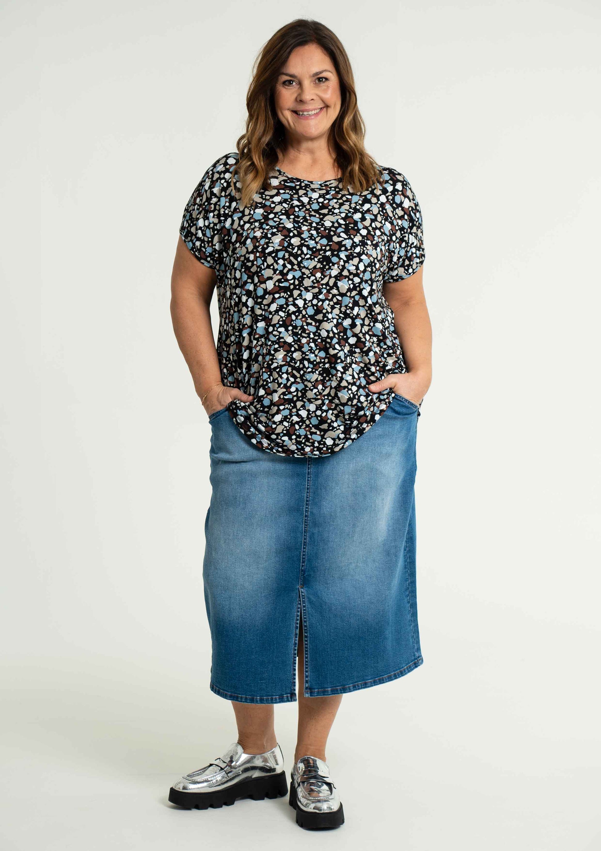 Tilføj et tidløst og alsidigt stykke til din garderobe med den skønne lange denim nederdel fra Gozzip Woman. Denne nederdel er fremstillet i en blød blanding af bomuld, viskose og elastan, der sikrer både komfort og bevægelsesfrihed. Med en elastisk linning i ryggen samt en knap- og lynlåslukning foran, kombinerer den funktionalitet med et stilfuldt look.