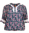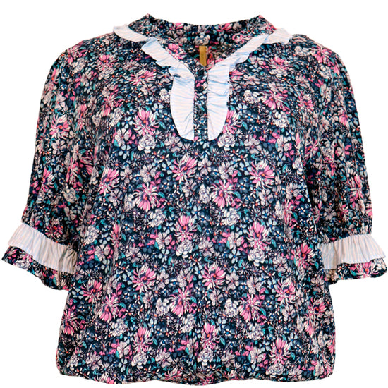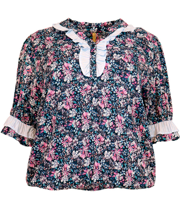 Bluse fra Cassiopeia med flæsedetaljer og elastik i bunden.