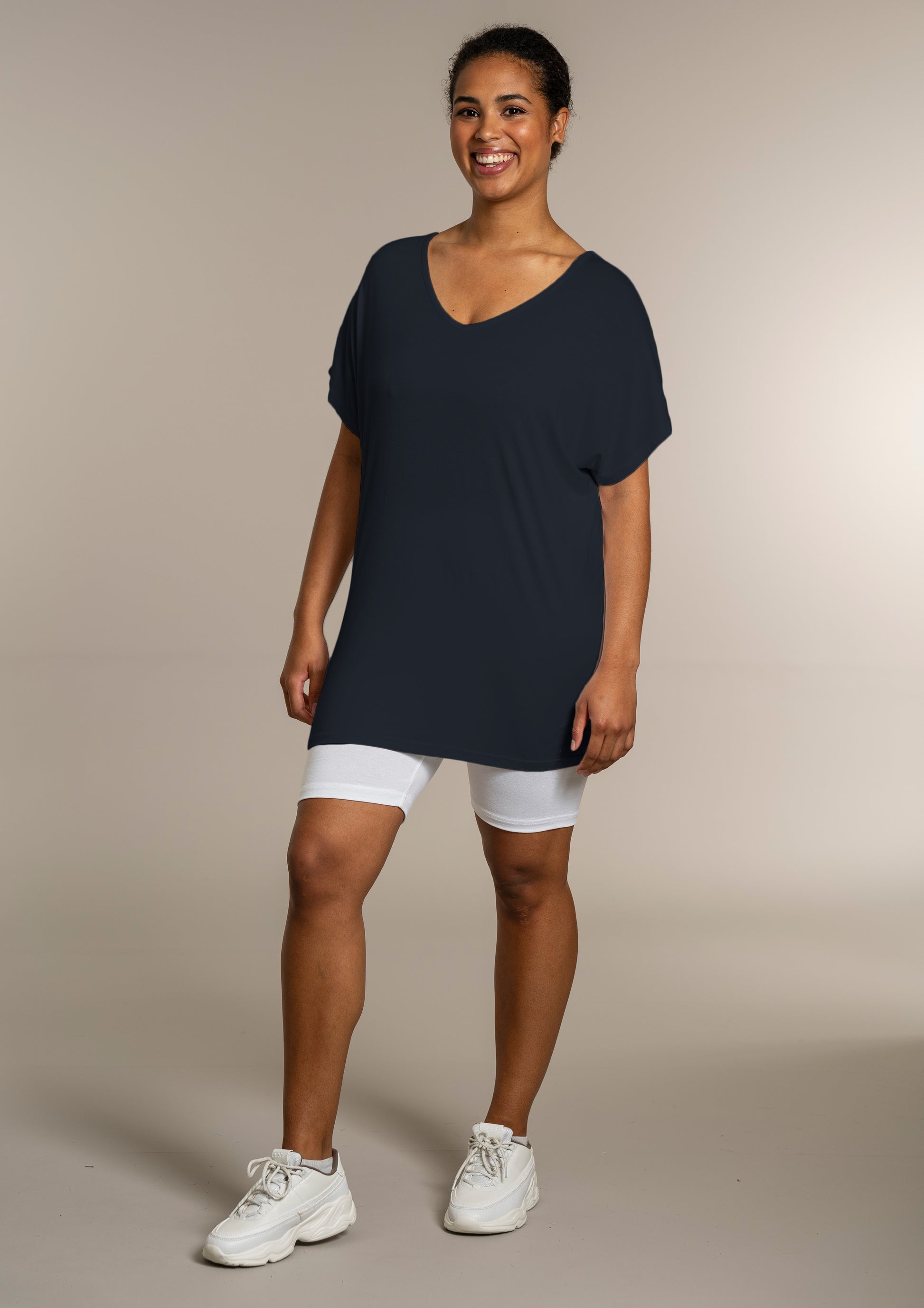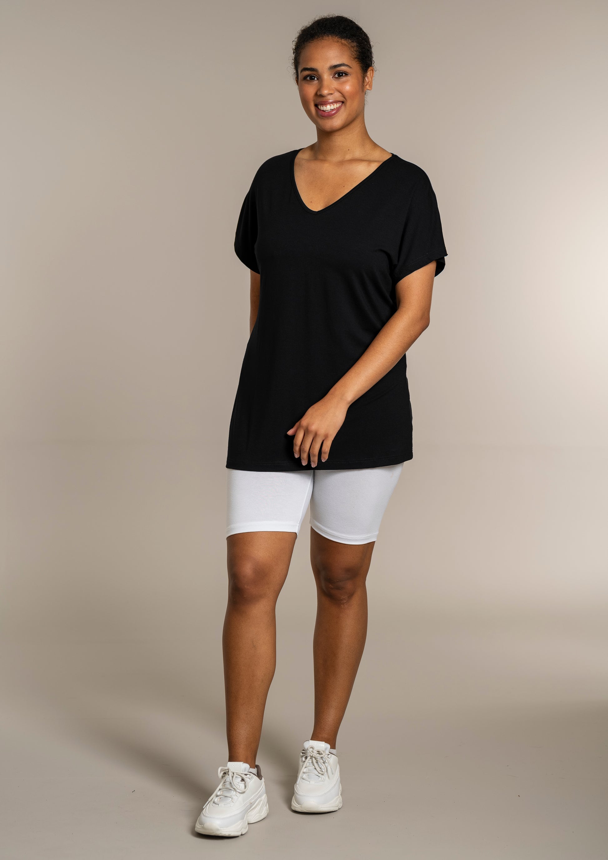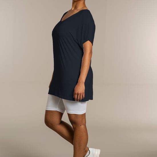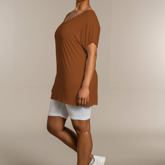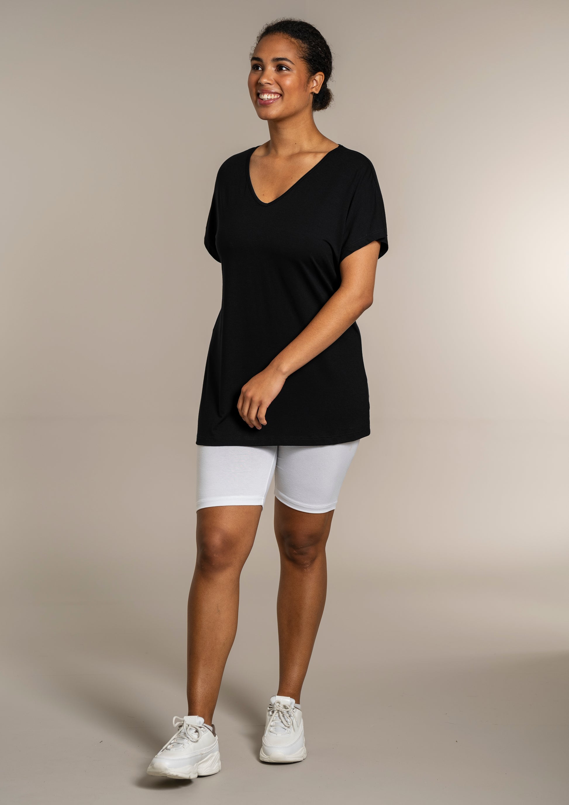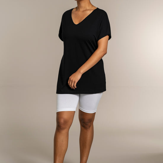 Den ekstra længde gør T-shirten ideel til både leggings og jeans, så du kan style den præcis, som du ønsker. Kombinér den med et par leggings for et afslappet look, eller se flere musthaves i vores basis kollektion.