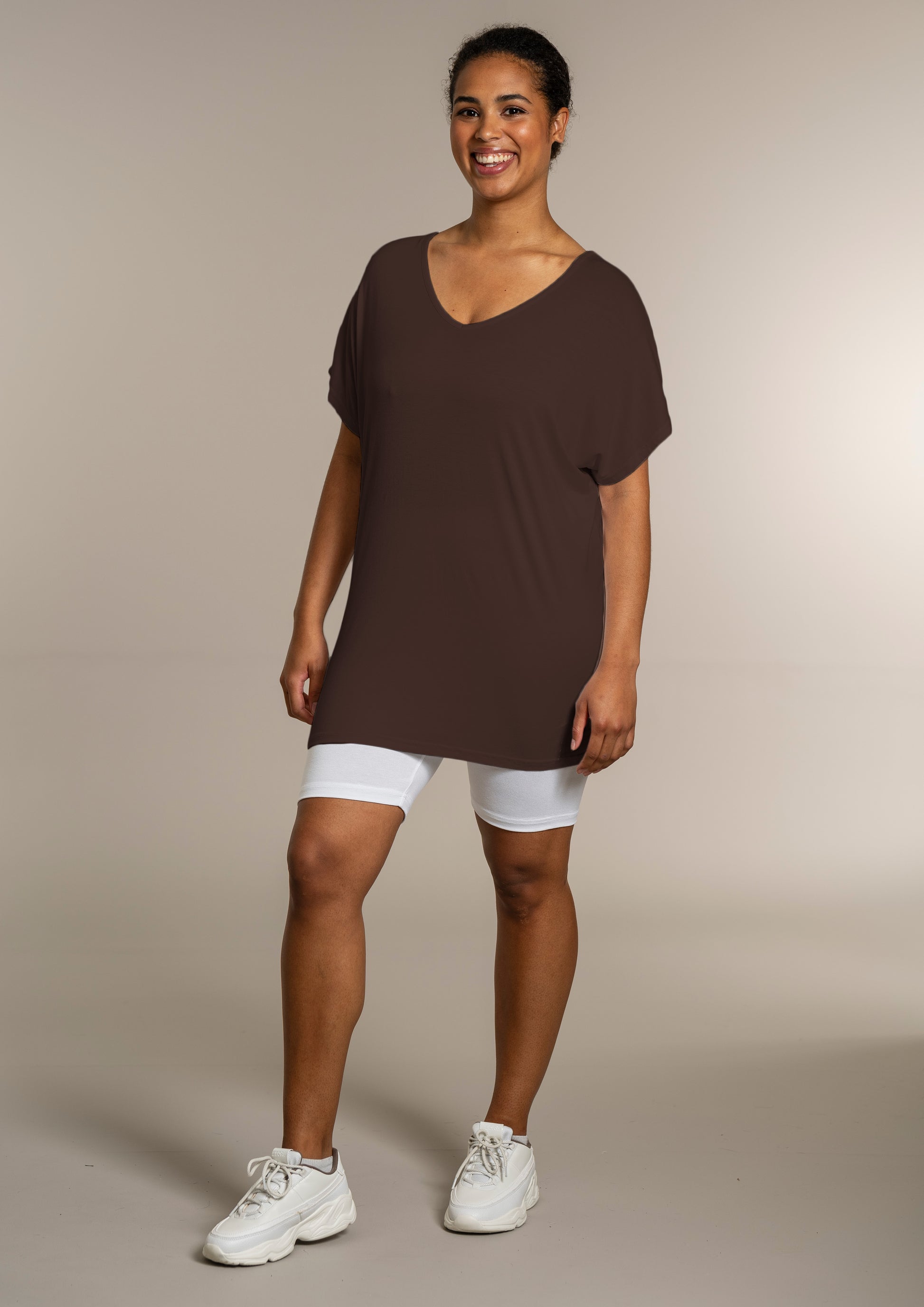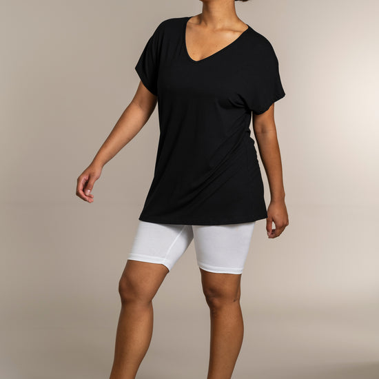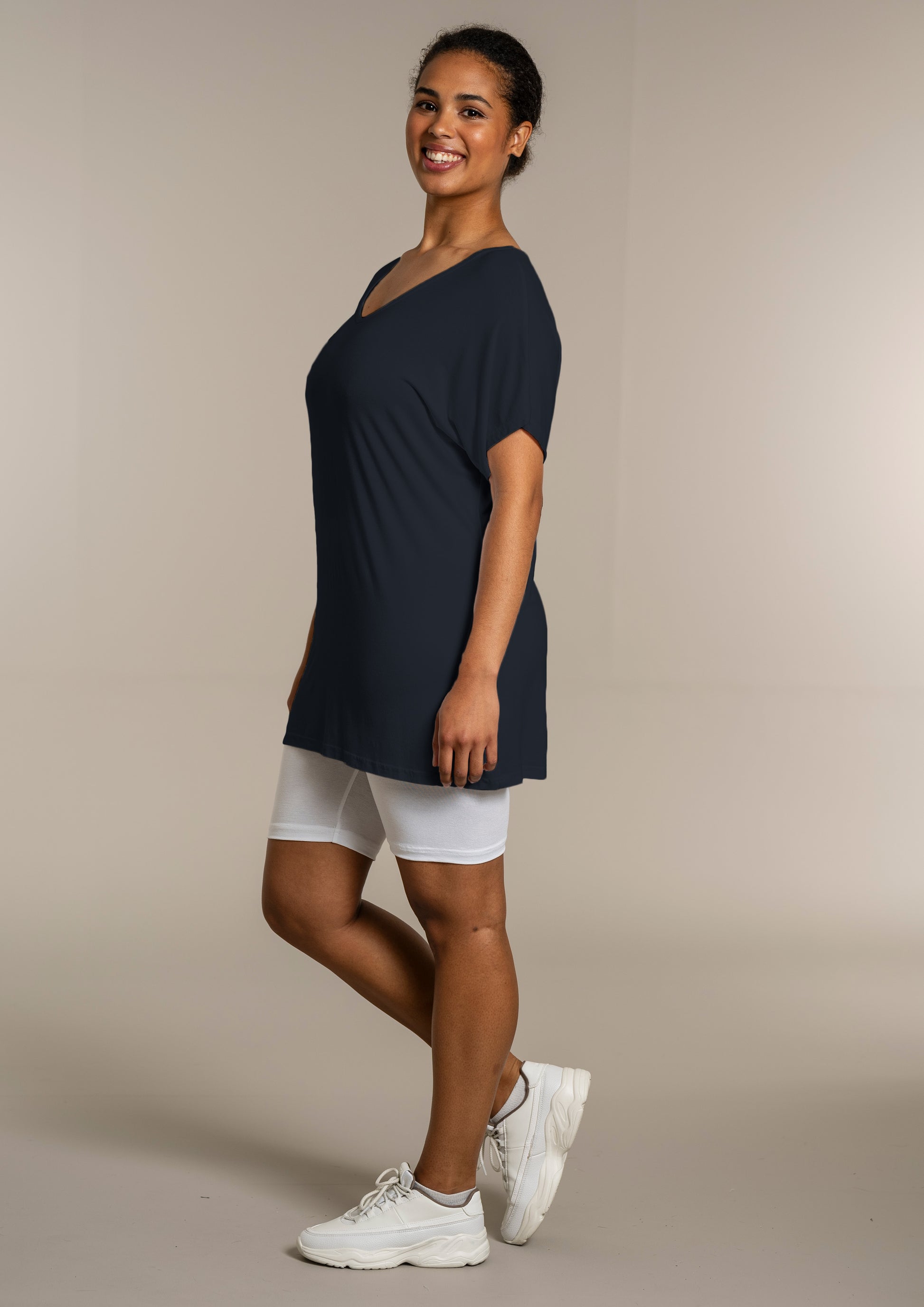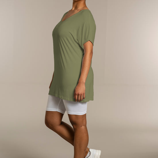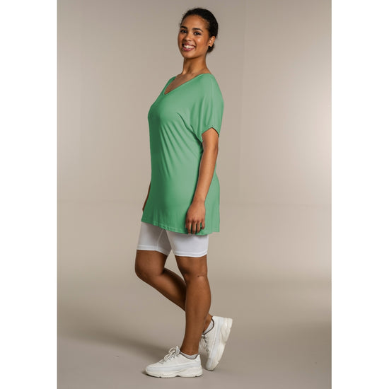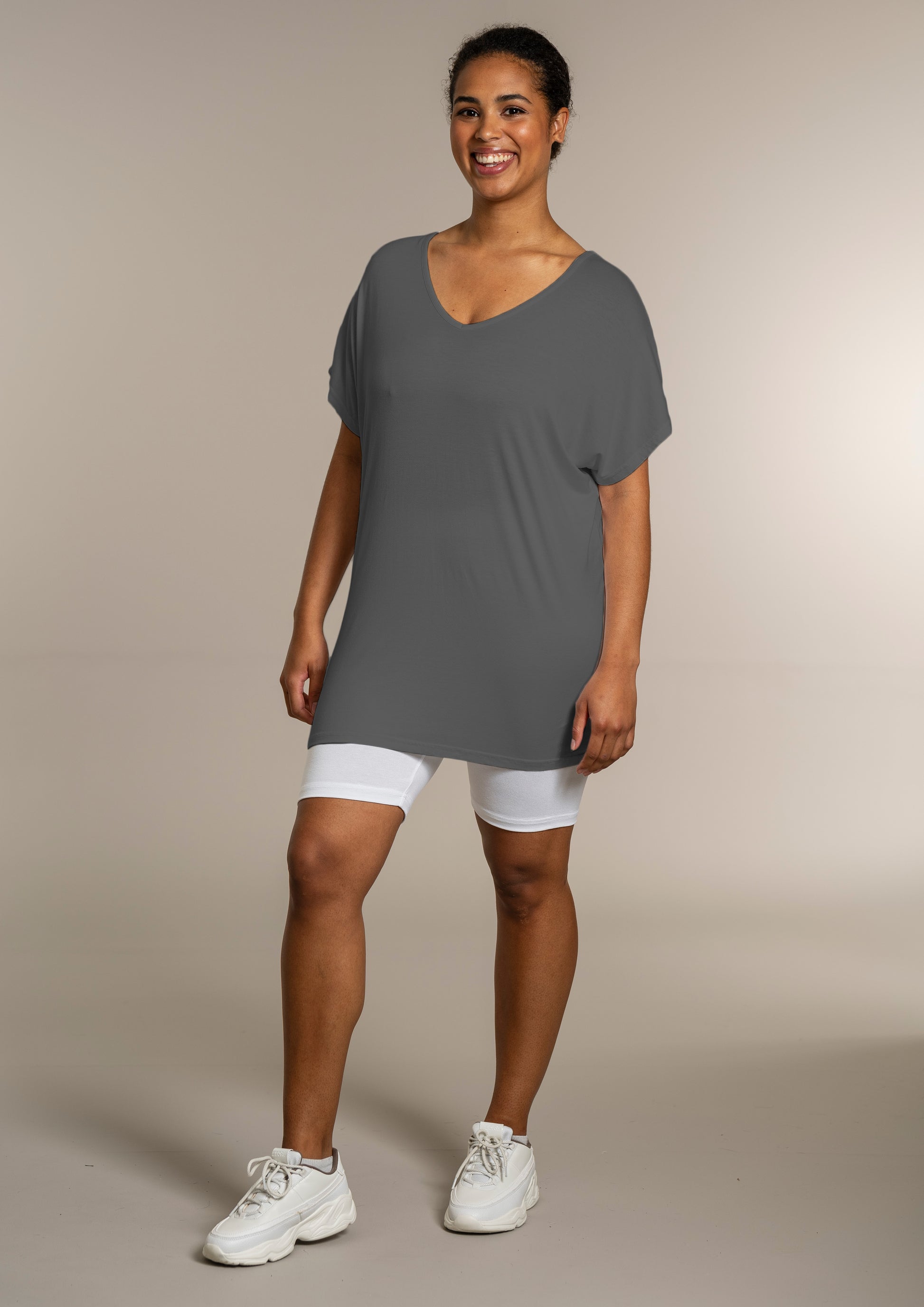 Den ekstra længde gør T-shirten ideel til både leggings og jeans, så du kan style den præcis, som du ønsker. Kombinér den med et par leggings for et afslappet look, eller se flere musthaves i vores basis kollektion.