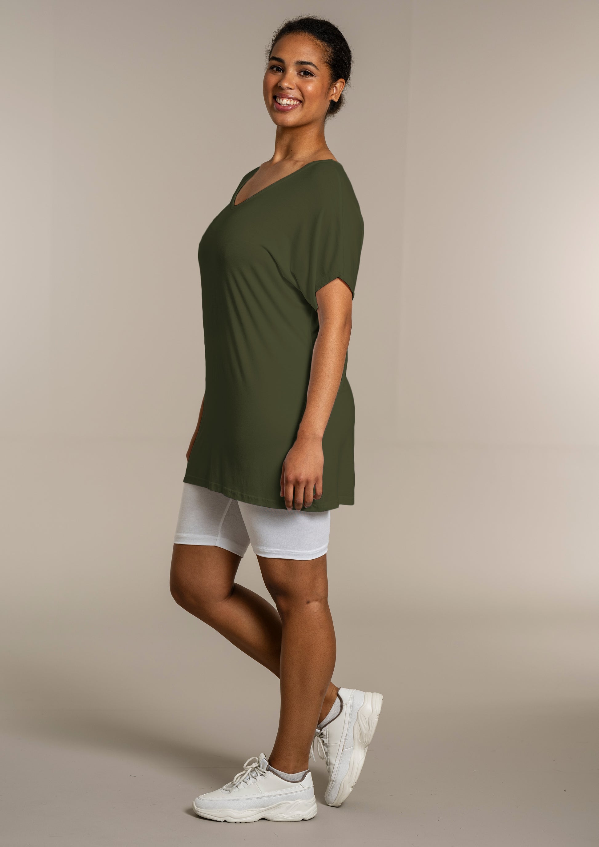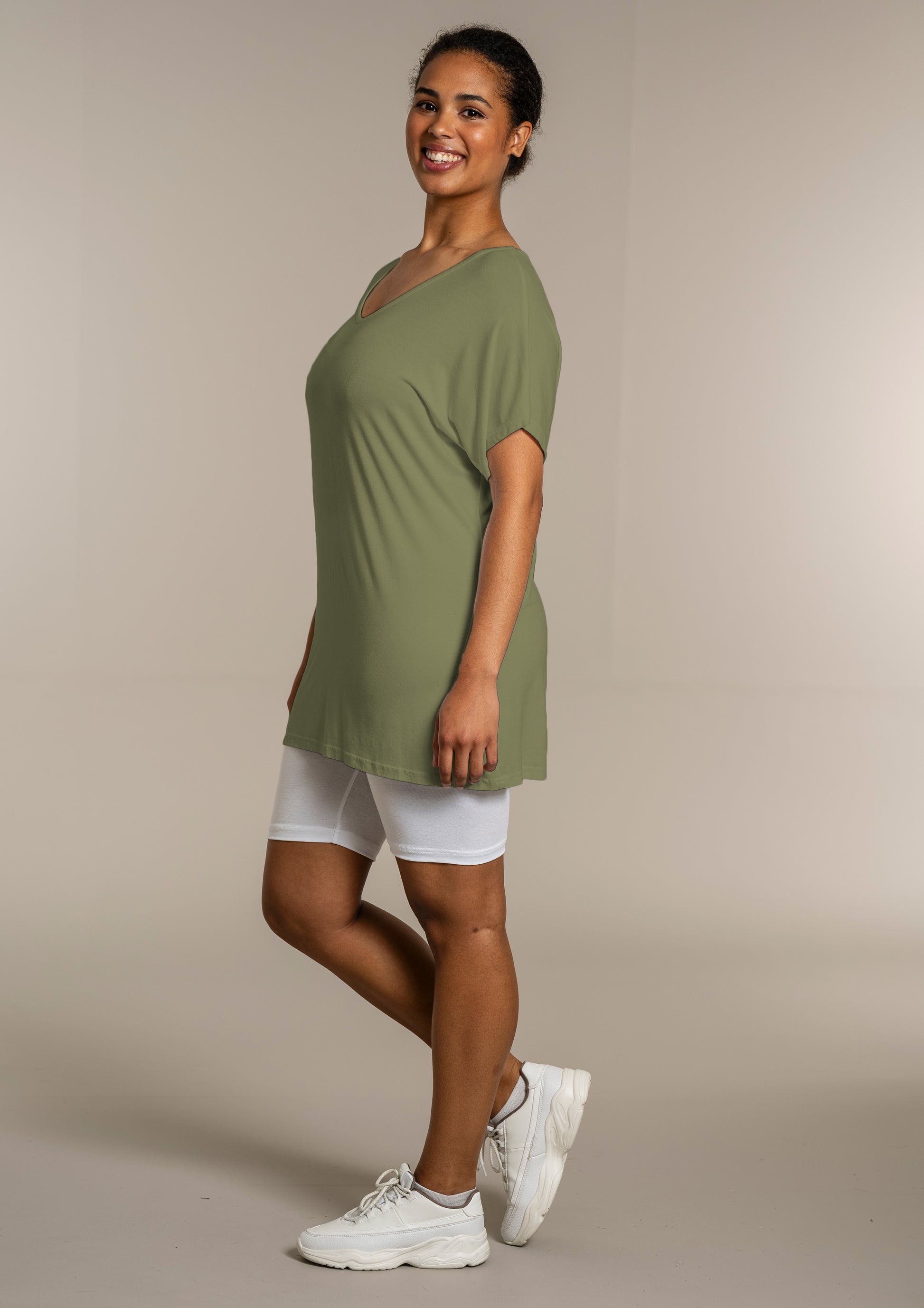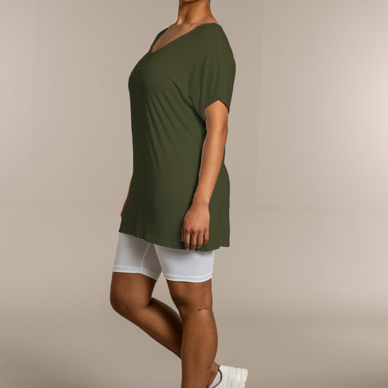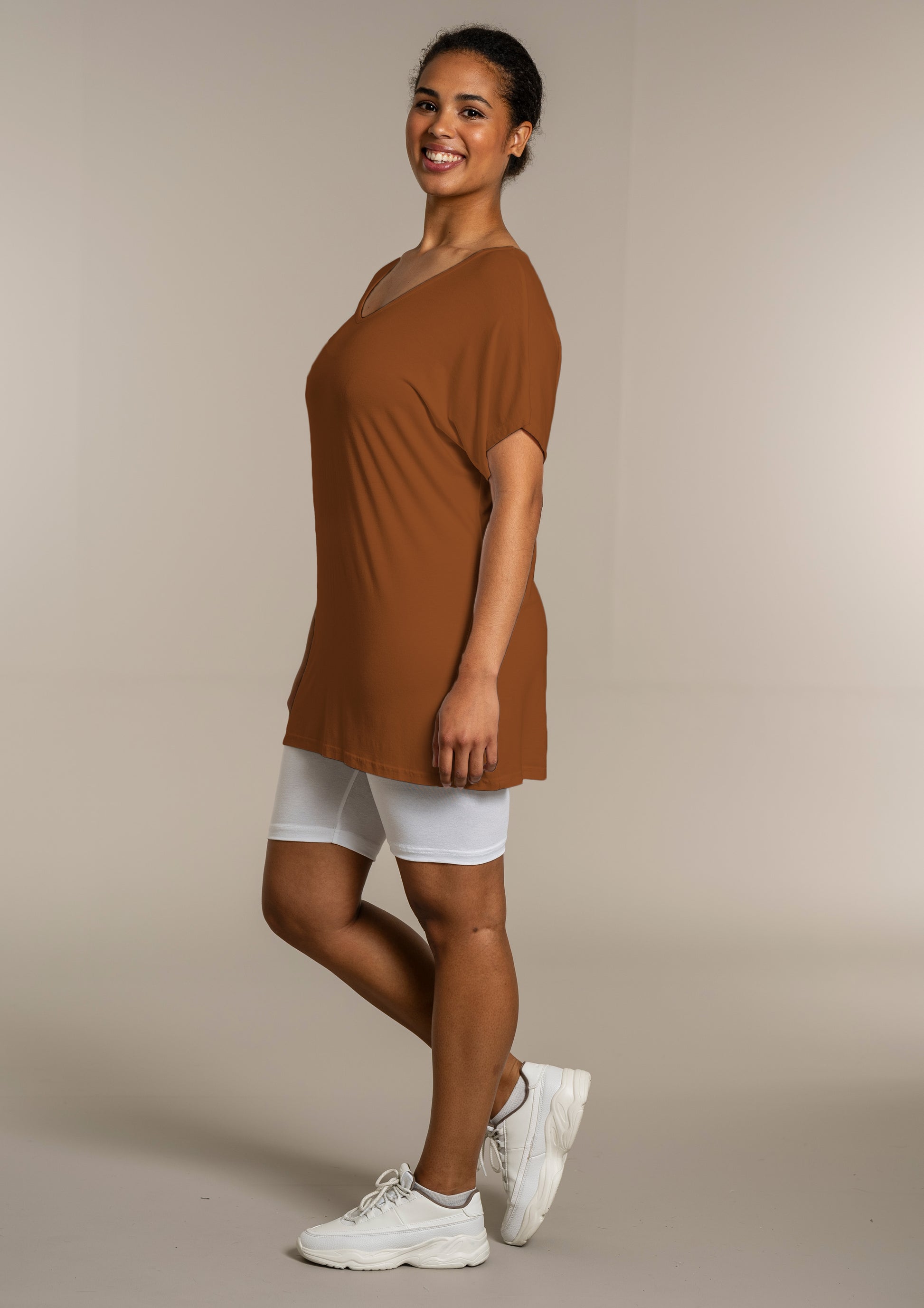 Den ekstra længde gør T-shirten ideel til både leggings og jeans, så du kan style den præcis, som du ønsker. Kombinér den med et par leggings for et afslappet look, eller se flere musthaves i vores basis kollektion.