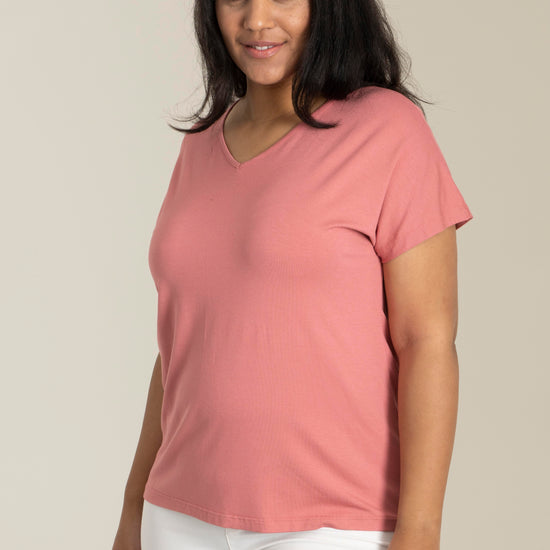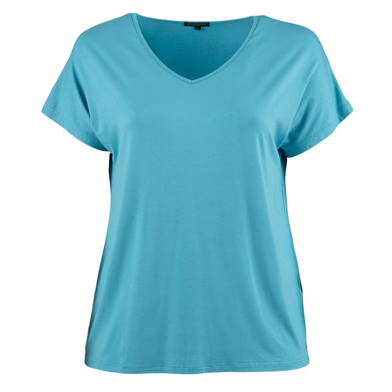 En enkel og alsidig T-shirt i blød jersey-kvalitet, lavet i en lækker viskoseblanding, der sikrer komfort hele dagen. Den har et unisex fit, drop-shoulder ærmer og en flatterende V-hals, hvilket gør den både moderne og tidløs. Vælg mellem flere flotte farver, så du kan finde den perfekte variant til din garderobe.