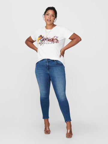 Jeans med middelhøj talje, 5-lommet model. Forvasket look.