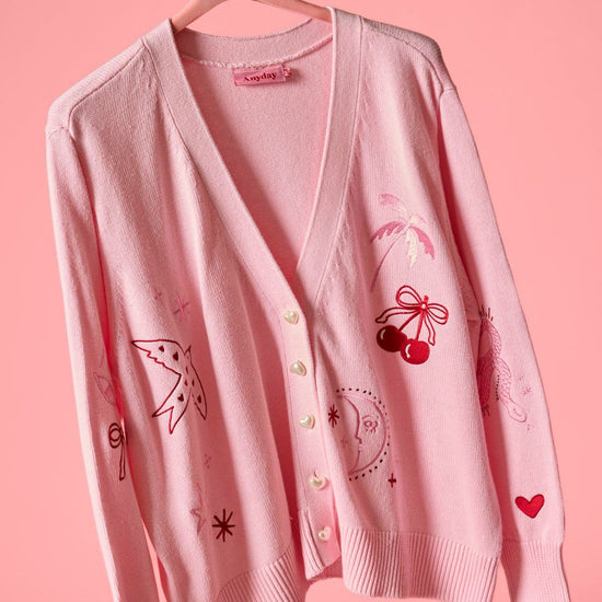 Feminin rosa cardigan med charmerende broderi