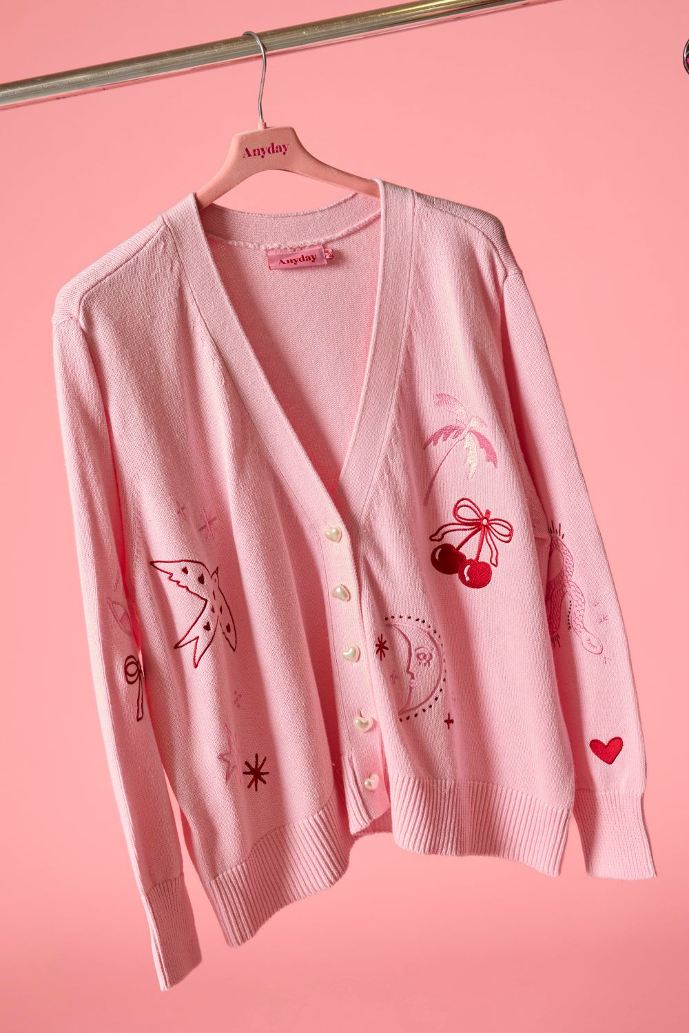 Giv din garderobe et legende og iøjnefaldende pift med denne skønne overdel i farven ballerina fra mærket ANYDAY. Modellen byder på en flatterende klassisk v-udskæring og utroligt fine hjerteformede pynteknapper, som understreger det feminine udtryk på denne plus size cardigan.