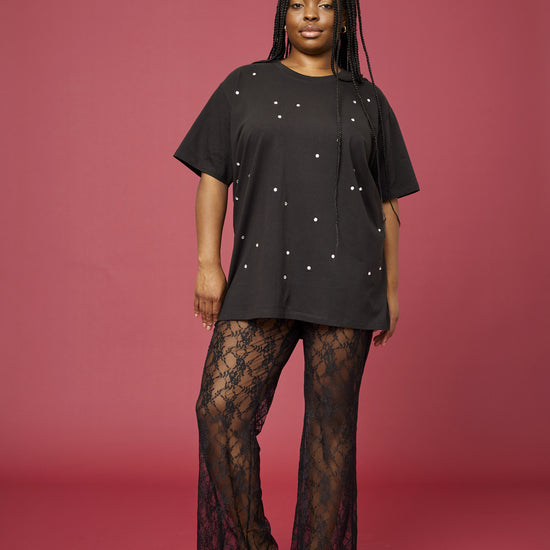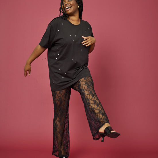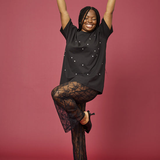 Opdag de smukke og elegante blondebukser fra Anyday, der kombinerer stil og komfort på bedste vis. Disse sorte bukser er fremstillet af 90% polyamid og 10% elastan, hvilket giver dem en let og fleksibel pasform. Med deres gennemsigtige blondefabric og intrikate mønster er de perfekte til både formelle begivenheder og afslappede sammenkomster.