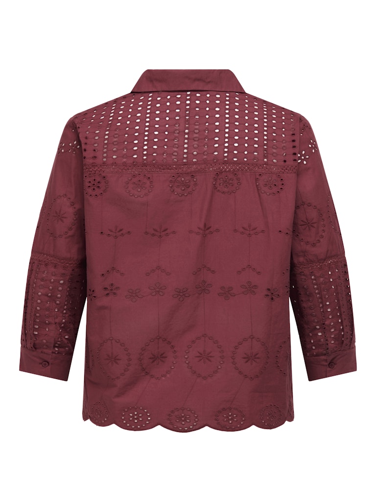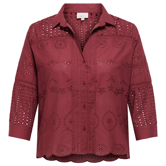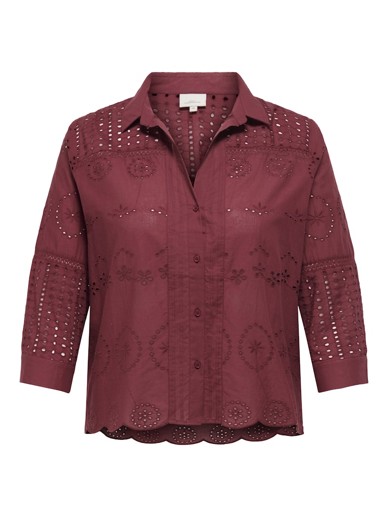 Elegant bordeaux bluse med broderie anglaise fra ONLY CARMAKOMA