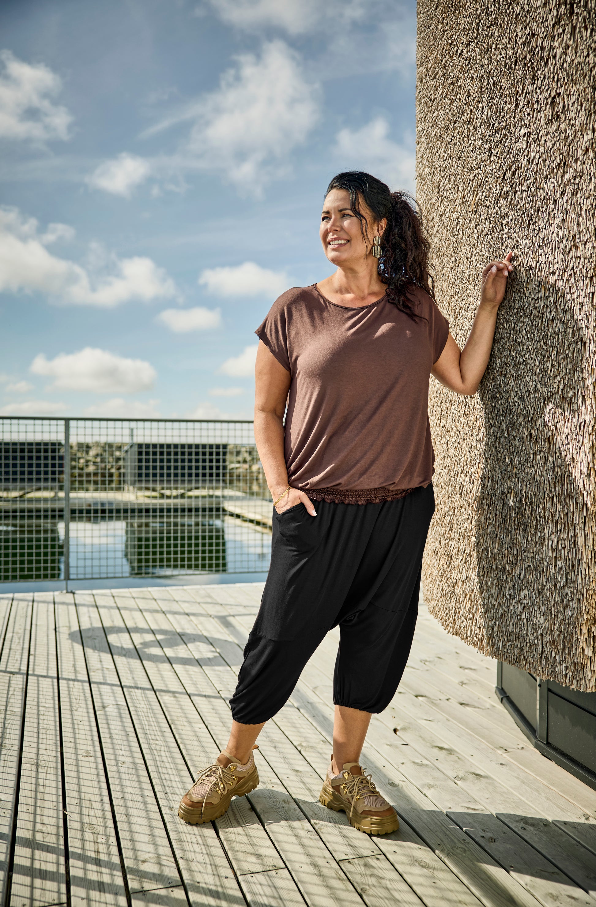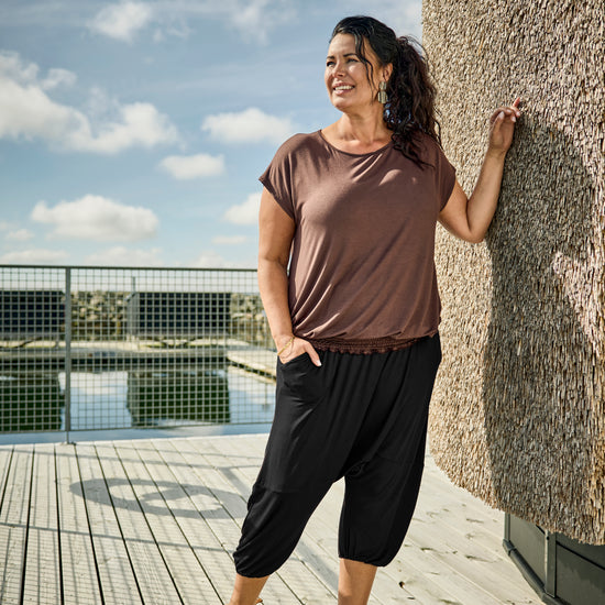 Du får her en buks fra zoey, der sidder fantastisk og føles let mod huden. Det sorte stof gør dem alsidige, så de let kan kombineres med andre items i din garderobe, uanset om du søger bukser i plus size til hverdag eller hygge.