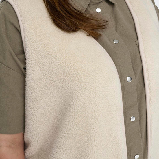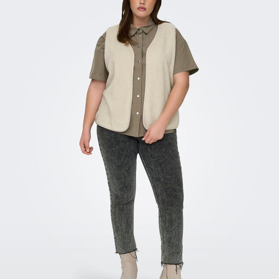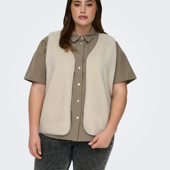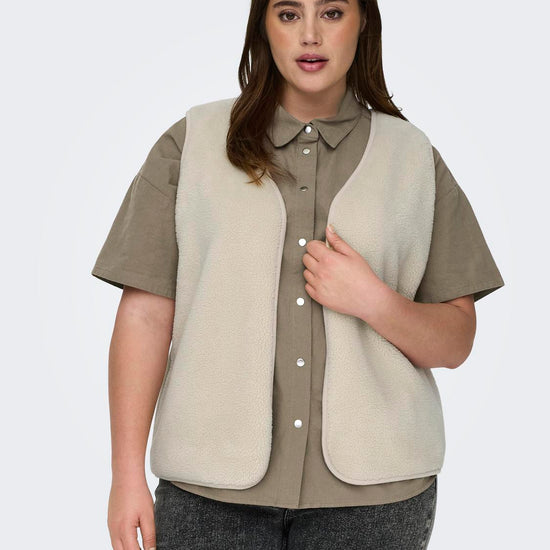Carbelisa teddy waistcoat jrs fra ONLY CARMAKOMA er den perfekte tilføjelse til din efterårsgarderobe. Denne bløde og fluffy teddyvest er fremstillet i 100% genanvendt polyester, hvilket ikke kun sikrer varme, men også en miljøbevidst stil. Med en åben krave og ærmeløst design er vesten ideel til lag-på-lag-styling, hvilket gør den perfekt til overgangsperioder.
