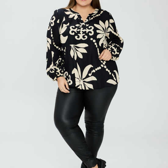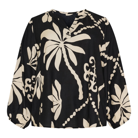 NO. 1 BY OX Bluse med sort / hvid leaf-print