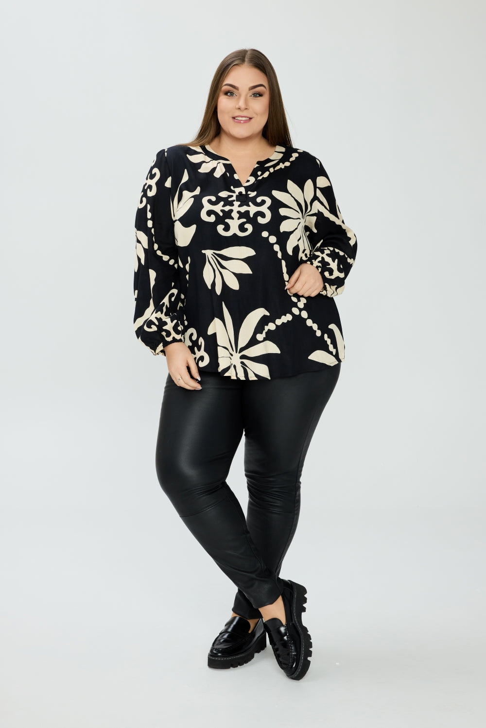Style blusen med et par plus size jeans og sneakers for et afslappet look, eller vælg en plus size nederdel og støvler for et mere elegant udtryk. Uanset om du ønsker et casual eller festligt outfit, er denne bluse et sikkert valg til enhver anledning.