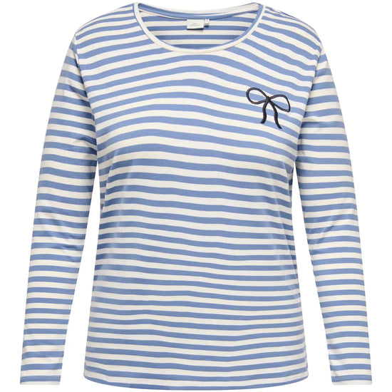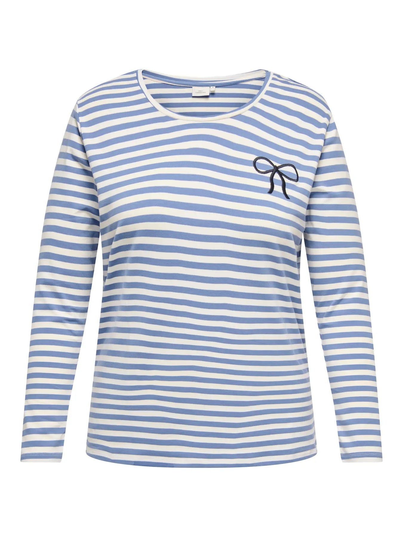 Denne langærmede model fra Only Carmakoma er en charmerende tilføjelse til garderoben med sit friske stribede design. På venstre bryst finder du broderi, der giver et feminint og kærligt touch til det ellers klassiske look. Det er en alsidig bluse i plus size, der nemt kan bruges til både hverdag og hyggelige stunder.