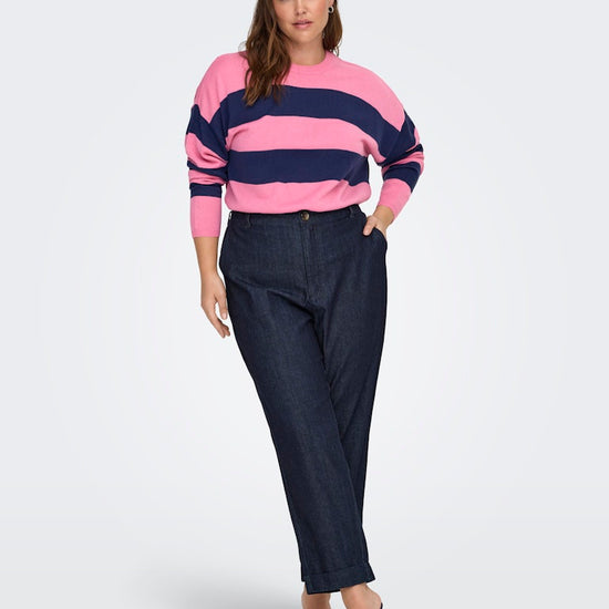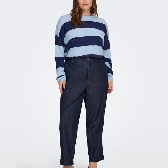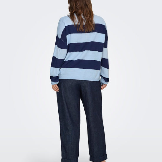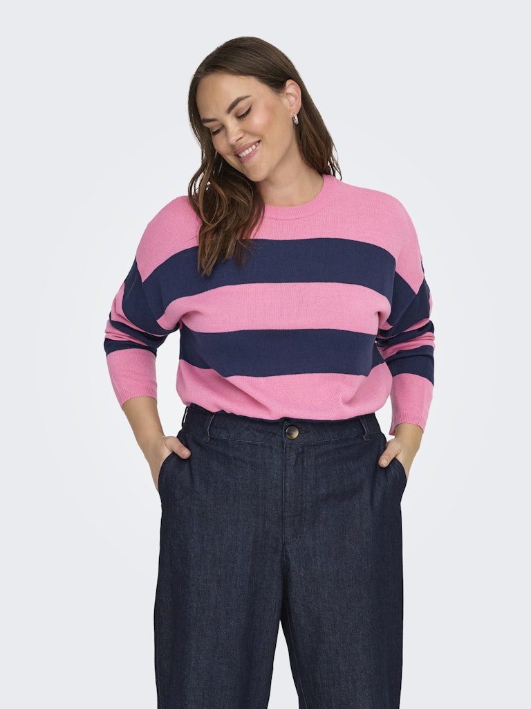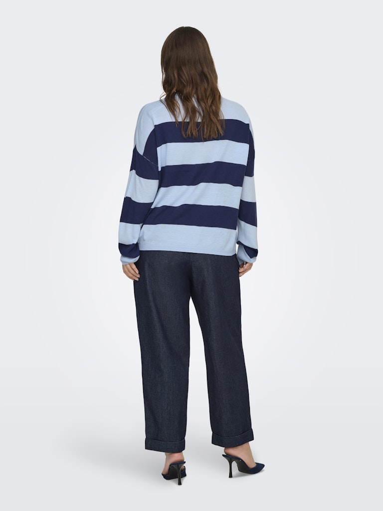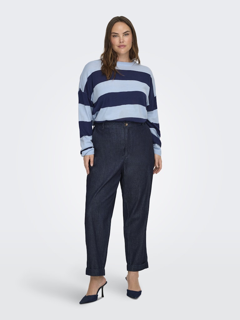 Den stribede pullover er ideel til et casual, men feminint look. Kombinér den med et par plus size jeans for en afslappet stil, eller tilsæt en plus size jakke for ekstra varme og fuldend dit outfit.