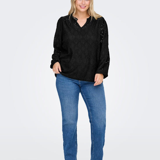 Den elegante CARELODIE L/S O-NECK BLOUSE JRS fra ONLY CARMAKOMA er skabt til dig, der ønsker et feminint og stilrent udtryk i garderoben. Blusen har en smuk hals med flæsekant, lange ærmer, der tilfører et diskret, men eksklusivt mønster. Materialet består af 95% polyester og 5% elastan, hvilket sikrer både komfort og fleksibilitet dagen igennem.