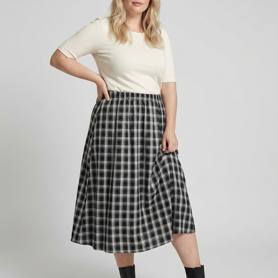 Denne lange nederdel fra Only Carmakoma er designet med et klassisk ternet mønster i sort og grålige nuancer, hvilket giver et stilrent udtryk til enhver anledning. Modellen har en synlig og bred elastikkant i taljen, som sikrer en optimal pasform og høj komfort gennem hele dagen, samtidig med at den fremhæver taljen flot. Det bløde stof falder behageligt om benene, og med sit simple snit er det en style, der nemt kan indgå i den moderne garderobe. Find flere lignende modeller under Only Carmakoma nederdel.